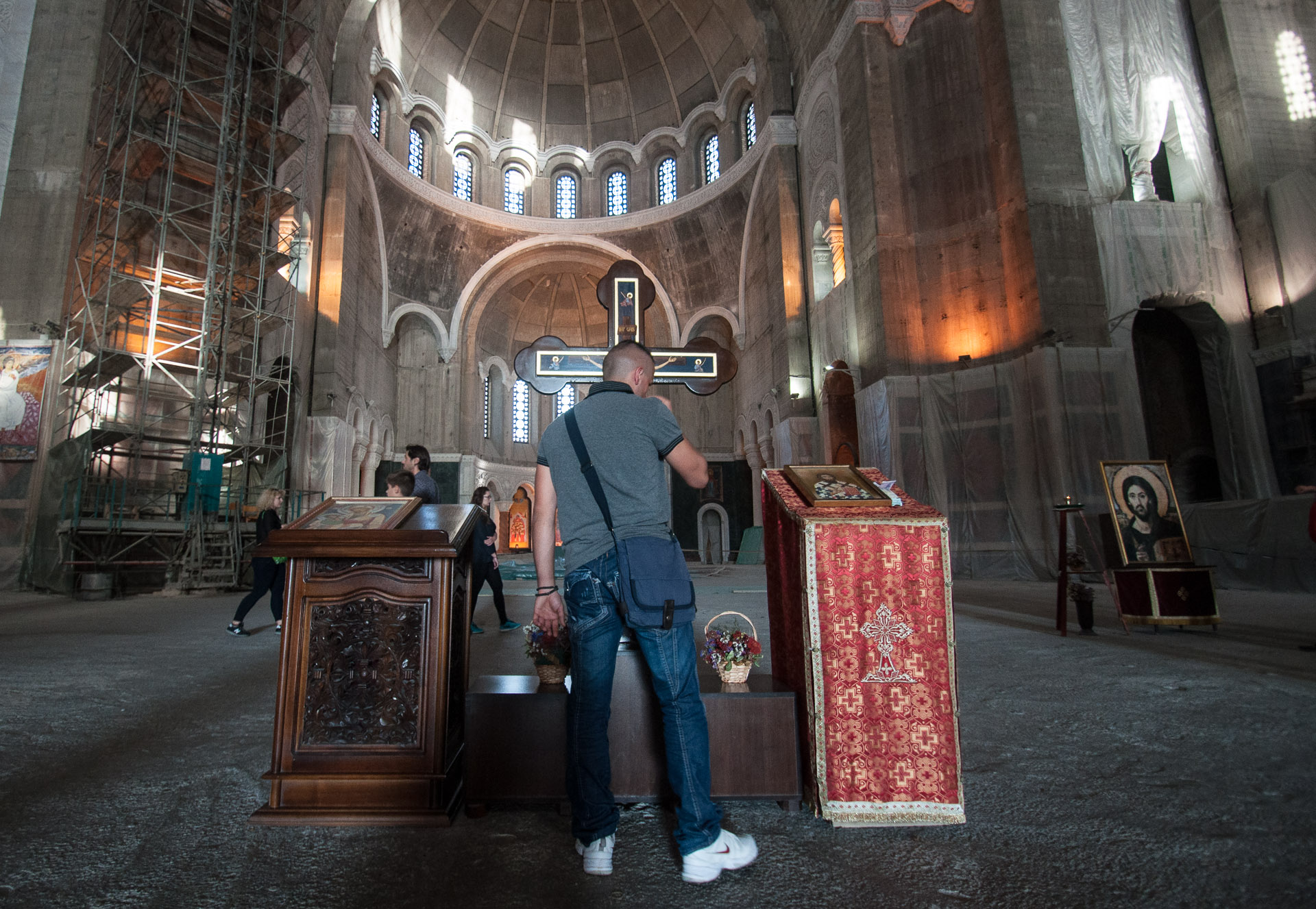 En el interior del templo se muestra la cara menos acabada del edificio cuya finalización todavía tendrá que esperar algunos años por la falta de un presupuesto elevado.