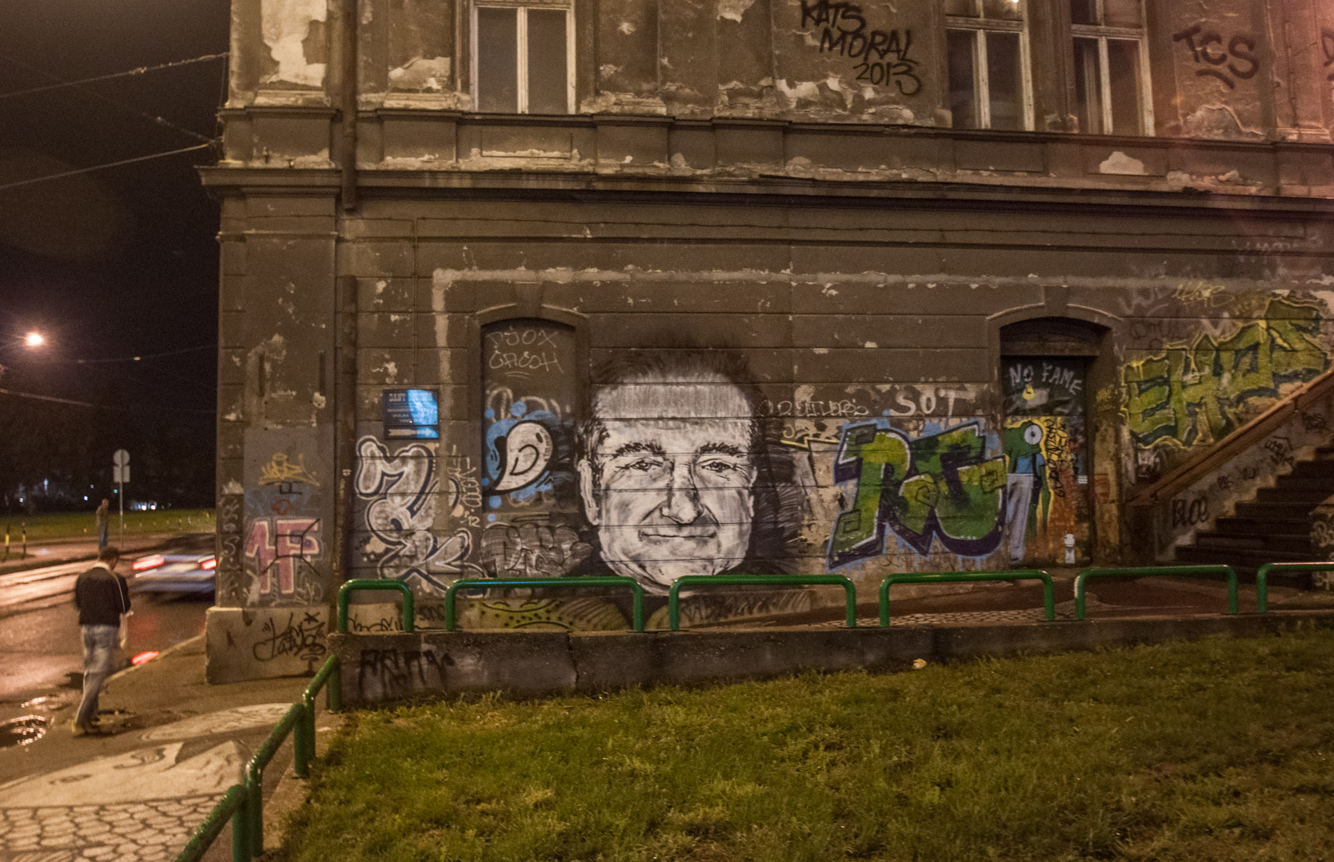 Continuando con el paseo nocturno es posible descubrir uno de los rincones grafiteros más famosos de la ciudad con el homenaje al actor cómico Robin Williams.