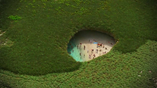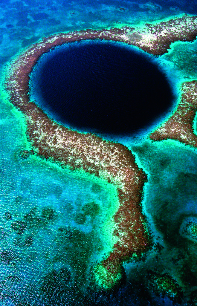 A unos 100 kilómetros de la costa de Belice se puede encontrar este capricho de la naturaleza, un perfecto y hermoso círculo azul con bordes de color turquesa que es visitado por miles de personas anualmente, sobre todo los que practican buceo. No es tan profundo como parece: sus 123 metros albergan gran cantidad de especies. En sus paredes se han encontrado claves para desentrañar el misterio de la desaparición de la civilización maya.