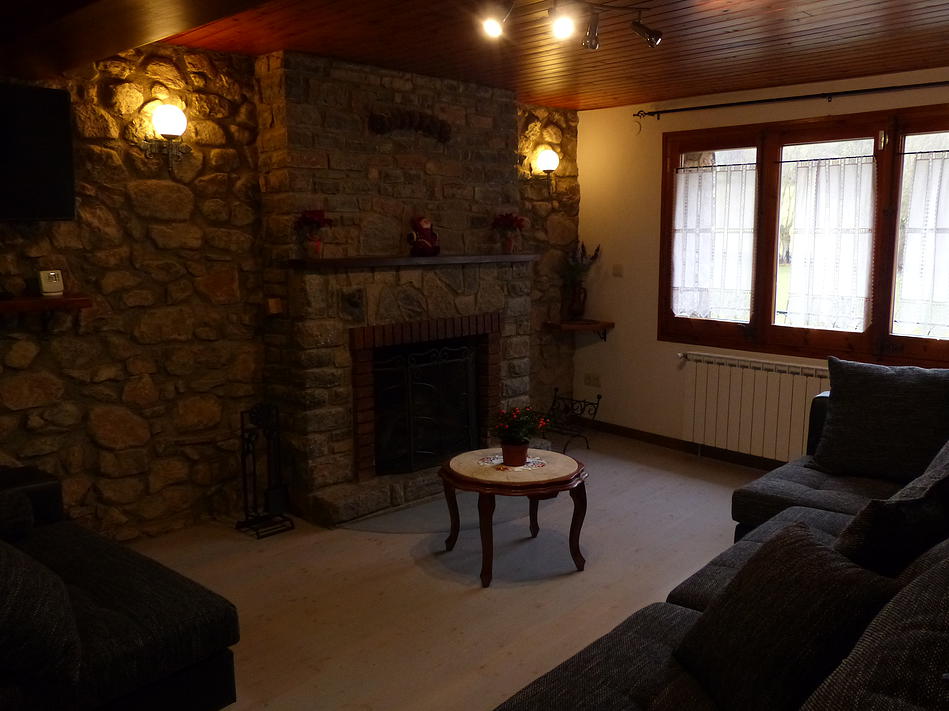 Dispone de una chimenea integrada en una pared levantada en piedra en una pequeña sala de estar. Aquí podrás relajarte escuchando el crepitar del fuego mientras miras por la ventana de esta casa de tres plantas que se encuentra en Bor (Lérida). Asimismo dispone de una terraza exterior acristalada y amueblada que será perfecta para poder divisar el paraje que rodea este alojamiento.
