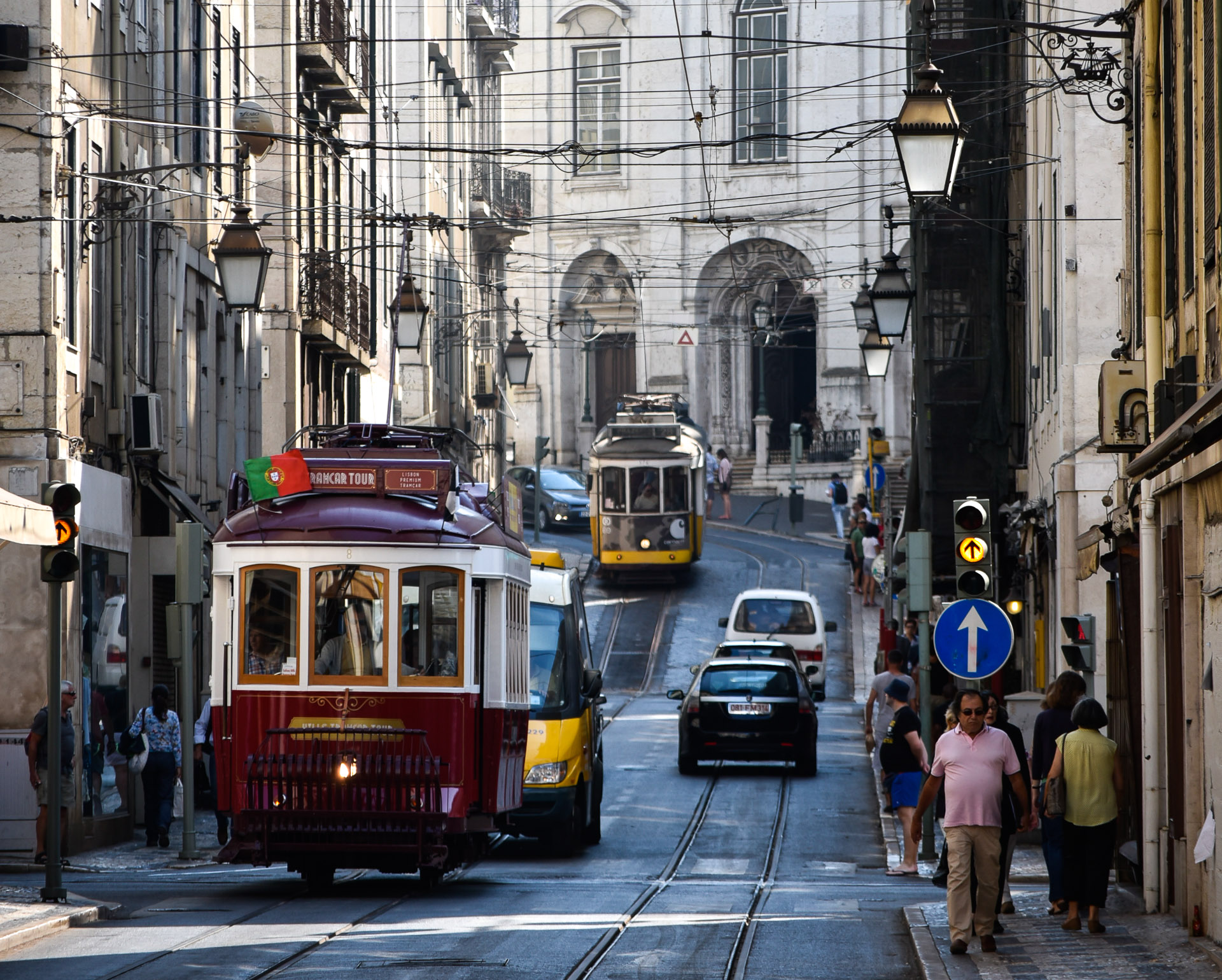 Una estampa clásica de Lisboa: el tranvía en ruta.