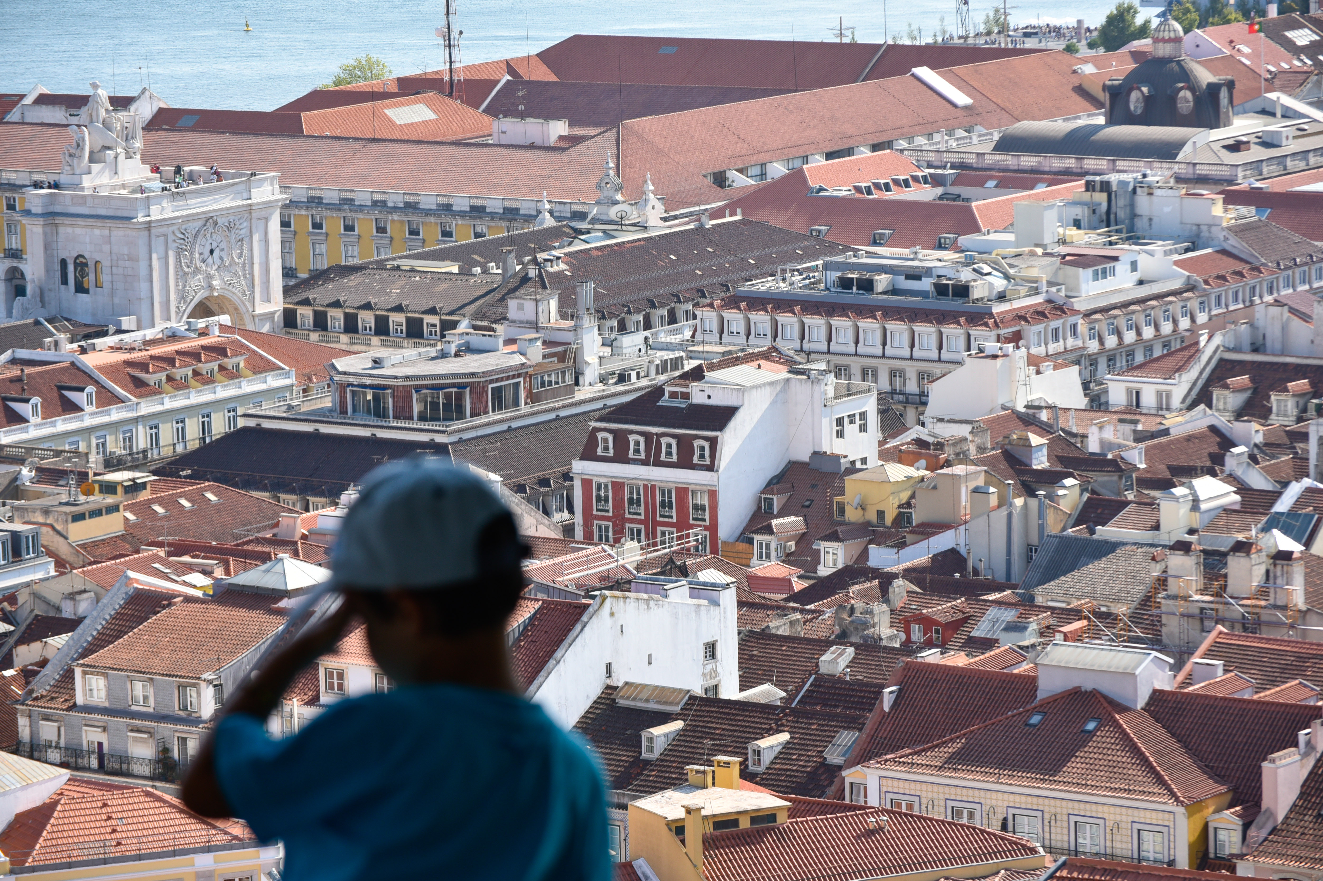 Un niño disfruta de la vistas desde el mirador del Castillo de San Jorge en Lisboa.