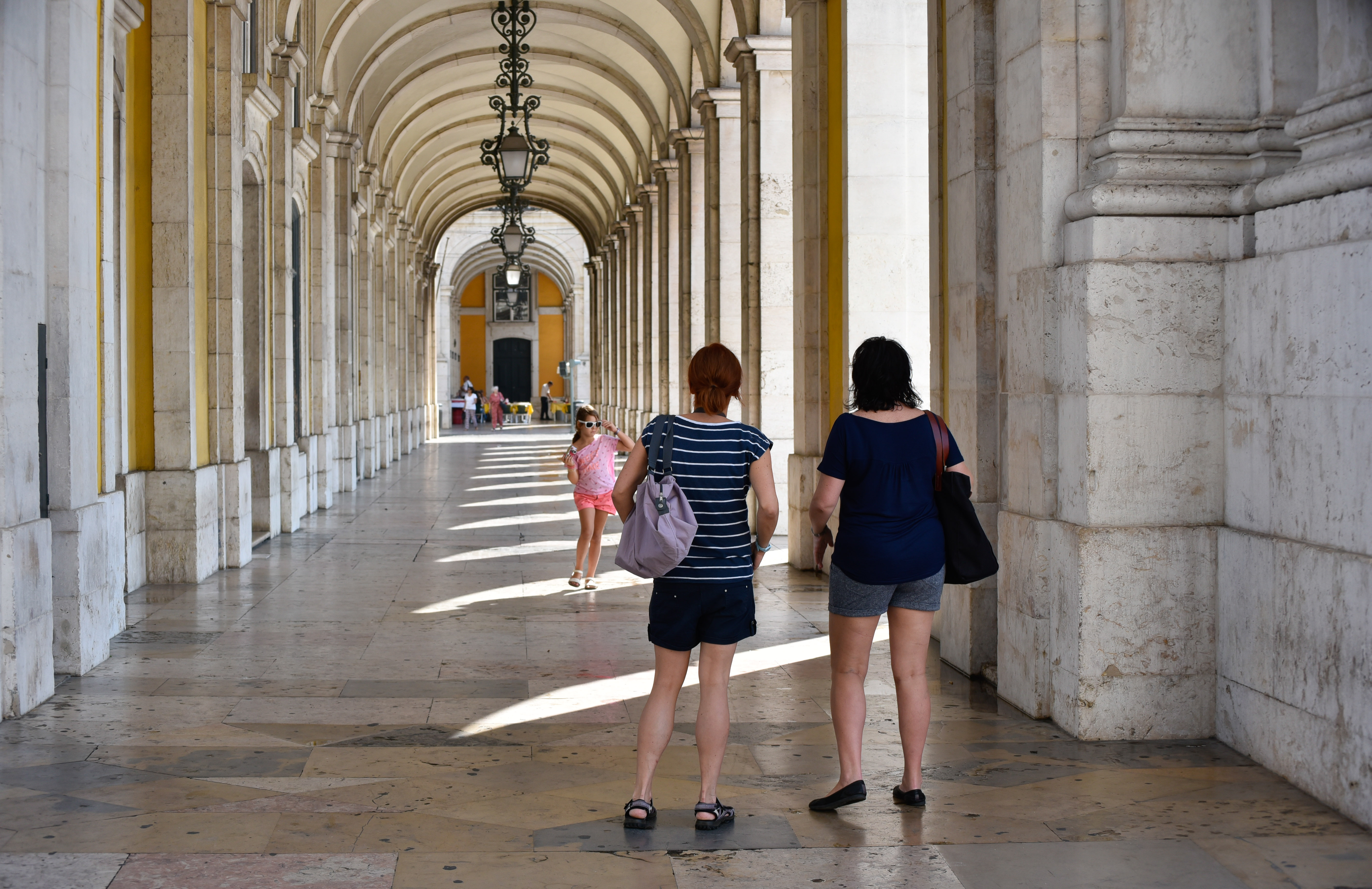 Los soportales del Arco da Rua Augusta en la Plaza del Comercio en Lisboa.