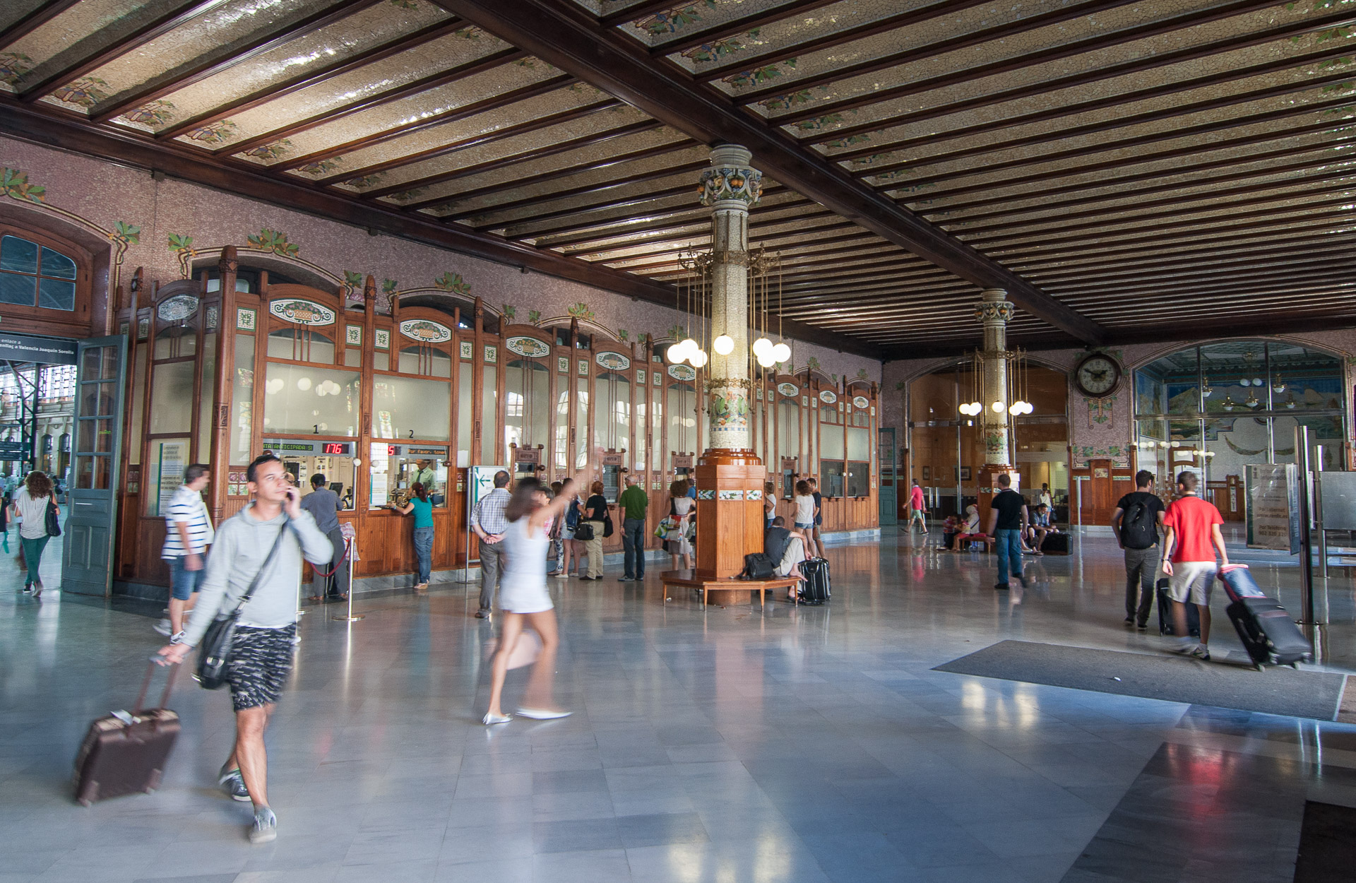 El precioso vestíbulo de la Estación del Norte, que es de la misma época que el Mercado Central y también un ejemplo de arquietectura modernista