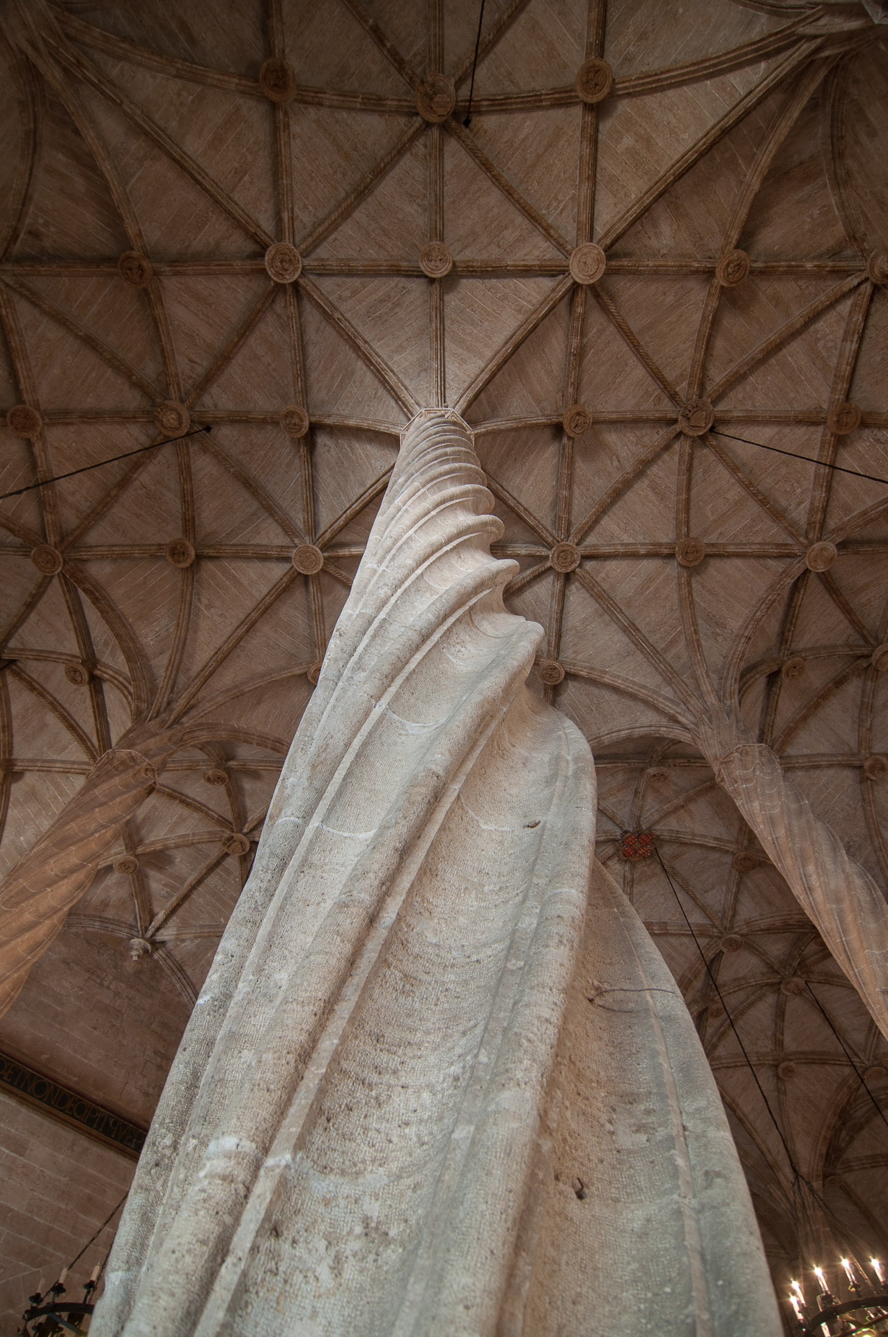Detalle de una de las columnas helicoidales y de la hermosa bóveda de la Sala de Contratación