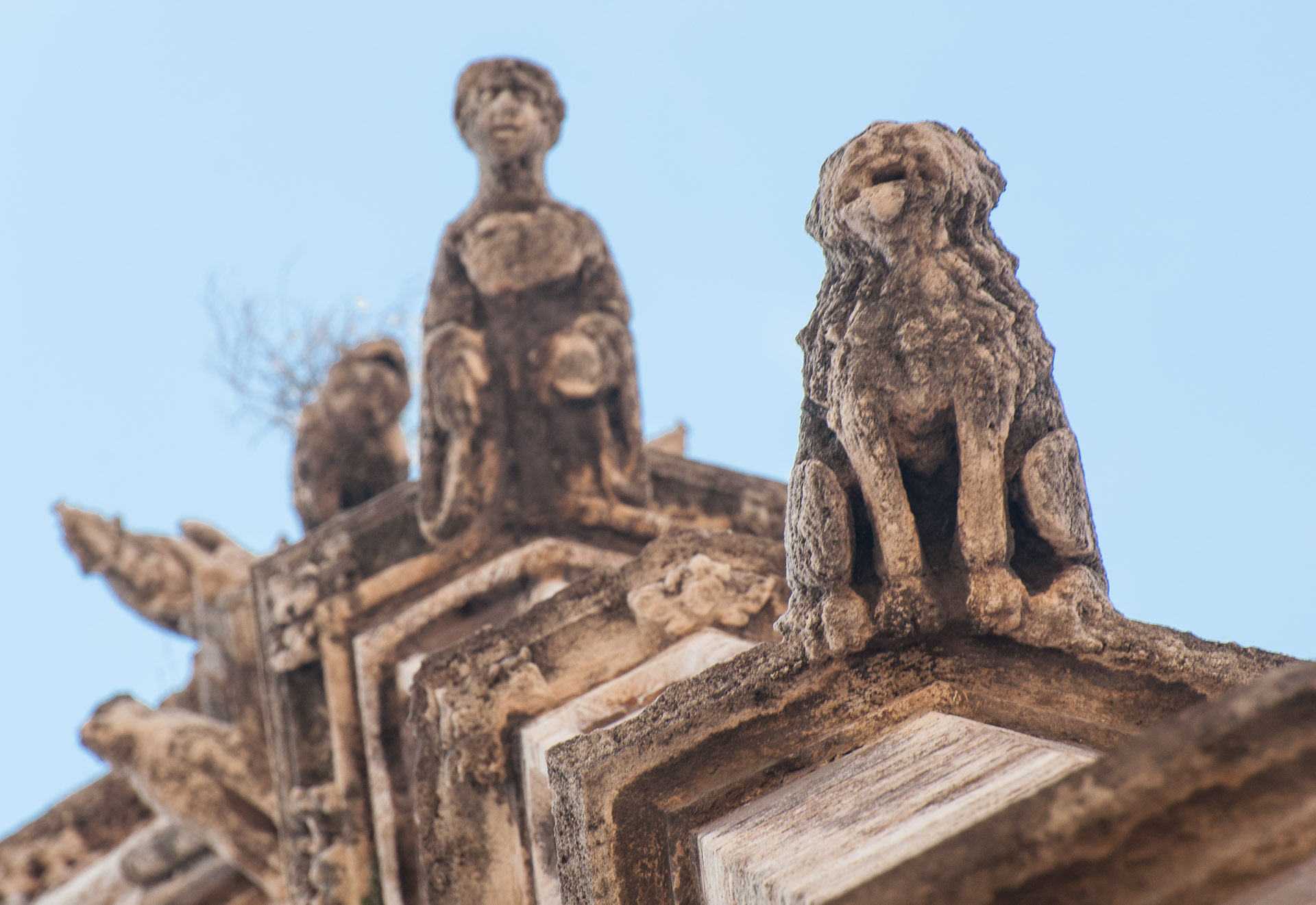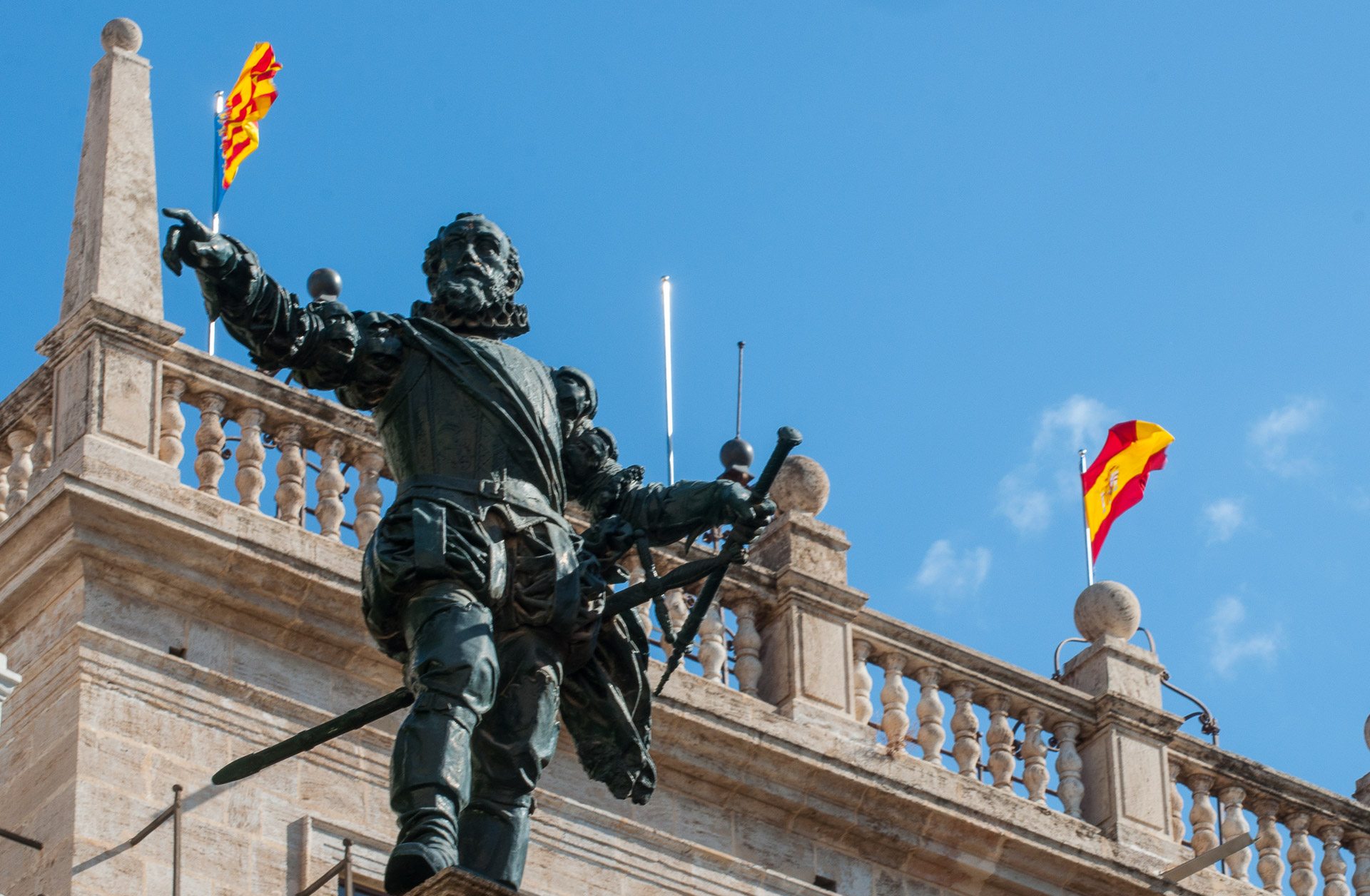 En la parte de atrás del palacio encontramos una curiosa estatua dedicada "a la raza española" y que representa al conquistador Pizarro