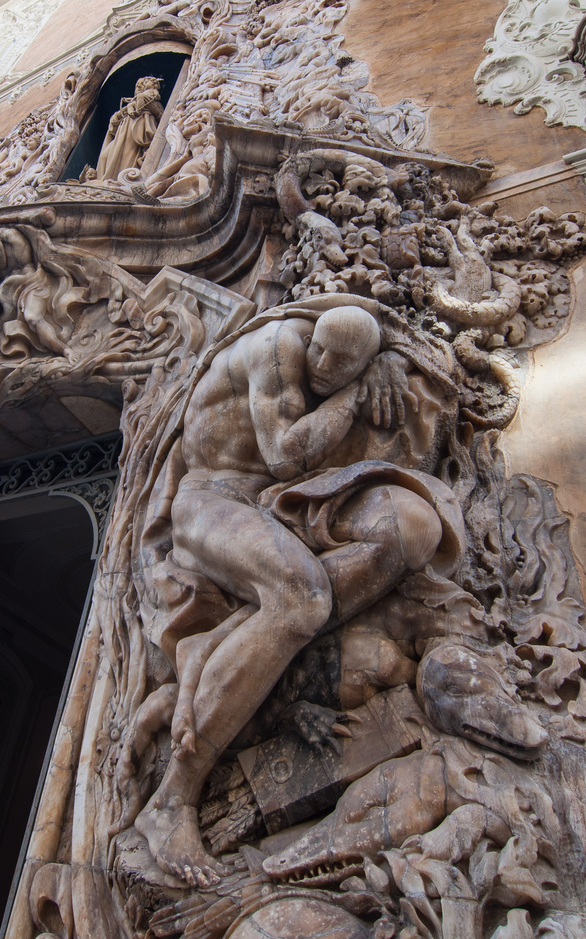 Vista en detalle de uno de los conjuntos escultóricos de alabastro