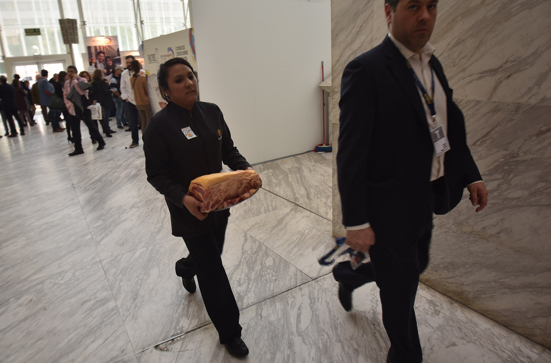 Madrid Fusion no para y hay que reponer los productos frescos. En este caso la carne de magro, escoltada para asegurar que llega a su destino.