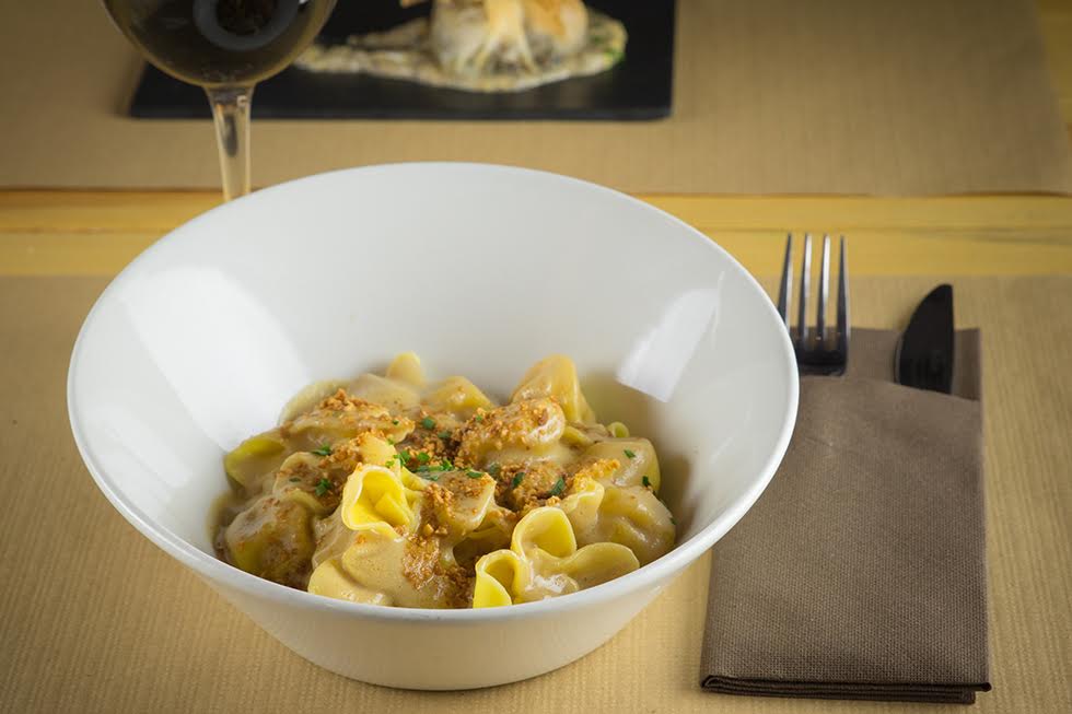 Lo de Top Ten tiene sentido: la carta se organiza en torno a diez deliciosos entrantes para compartir y diez segundos para continuar. Y todos ellos aspiran a figurar en nuestro "top" personal. A esta segunda categoría pertenece la imagen de los Fagottini de pera y ricota con salsa de foie y frutos secos, uno de los platos recomendados del local.