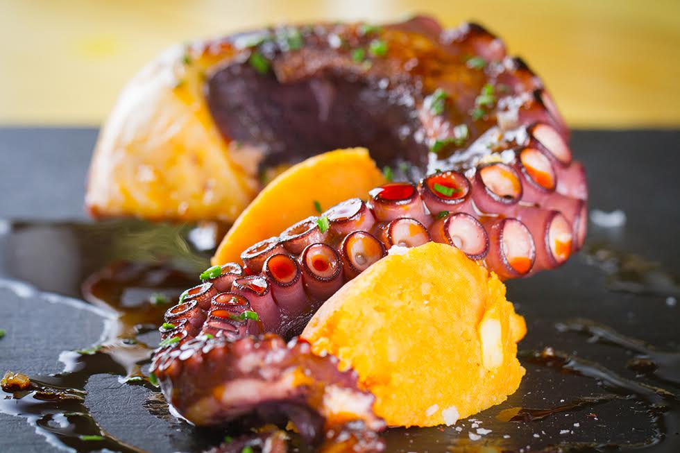 ¿Y si, cuando llegas a tu restaurante favorito, te encuentras en la carta directamente con tus sugerencias? En Top 10 esta es una de las claves, la atención personalizada y el trato familiar. Además de, claro, la cocina, de inspiración mediterránea pero altamente creativa. En la imagen, sus deliciosas patatas y suavísimas patatas con salsa de chipotles (por cierto, el picante se puede graduar a gusto del cliente). En la imagen, el Pulpo tostado con patata machacada al ajoarriero.