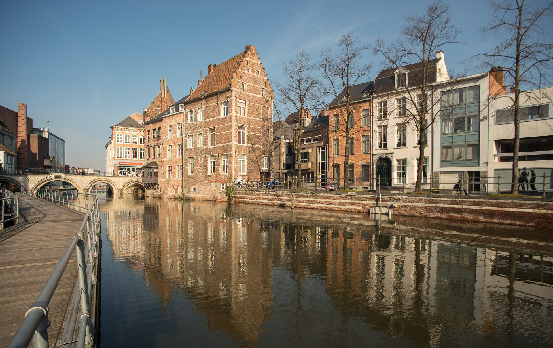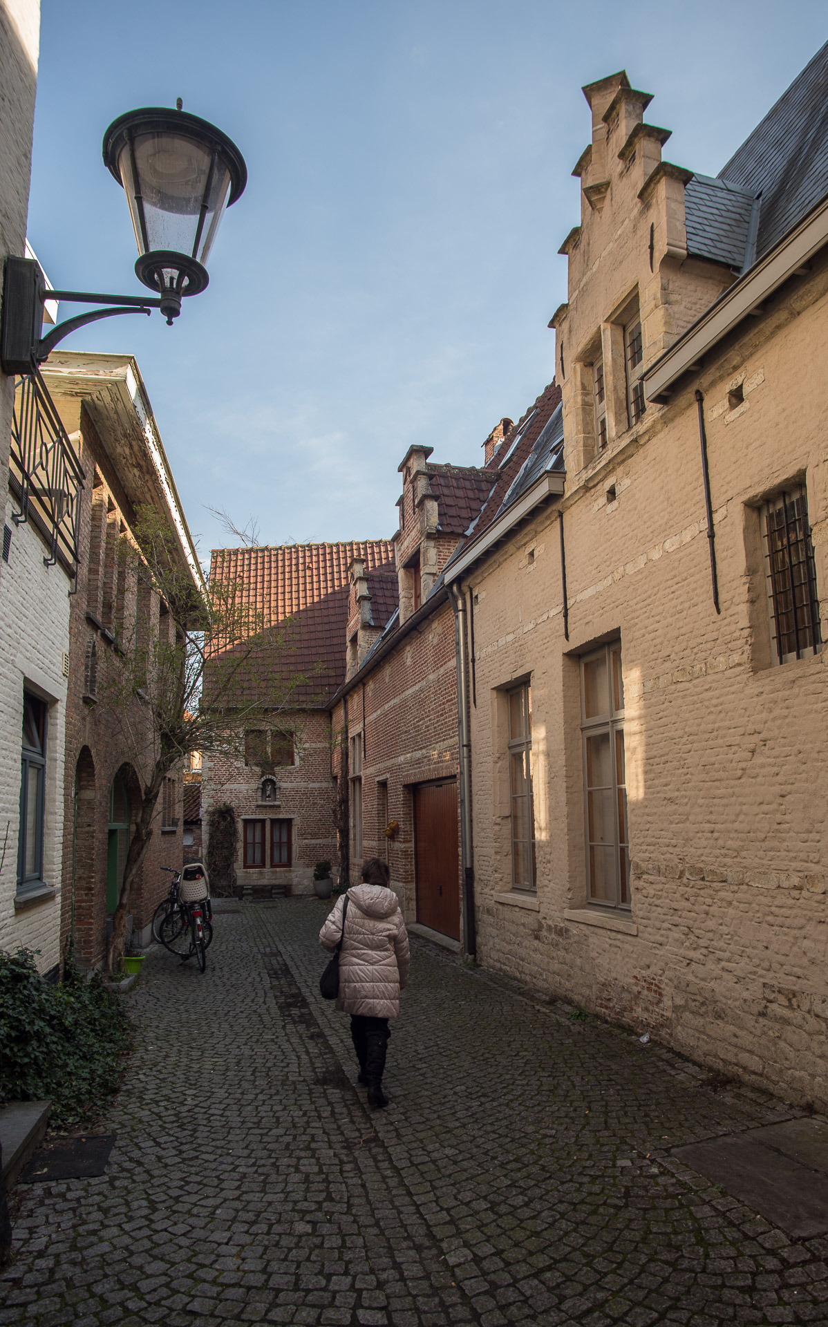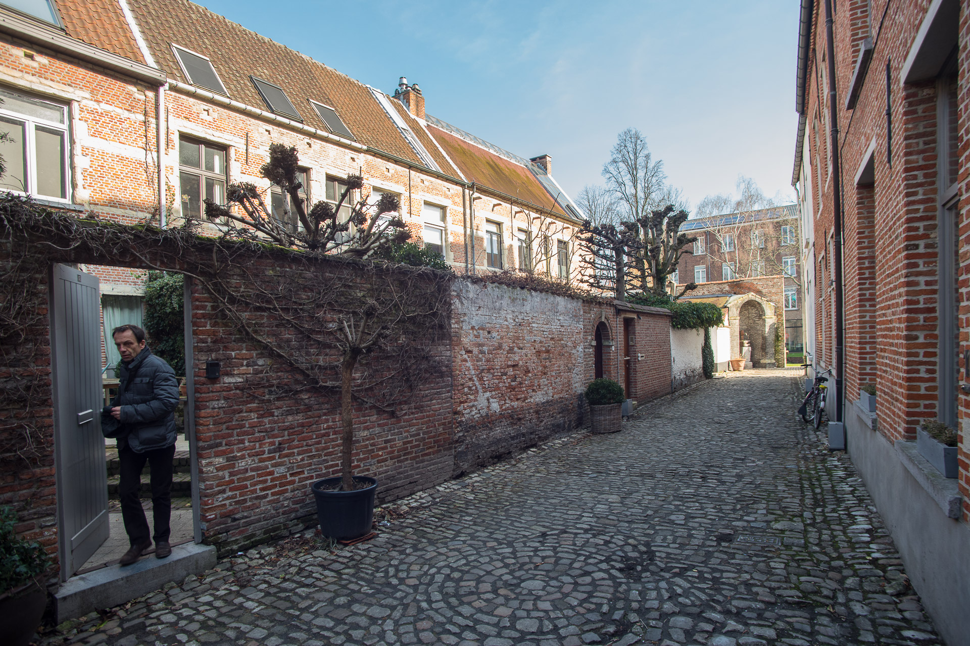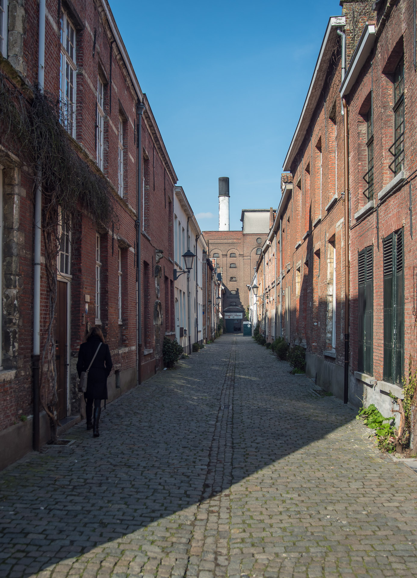 Una calle del beguinario mayor, que es parte de la lista de los protegidos como Patrimonio de la Humanidad. Al fondo la fábrica de la deliciosa cerveza Goude Carolus