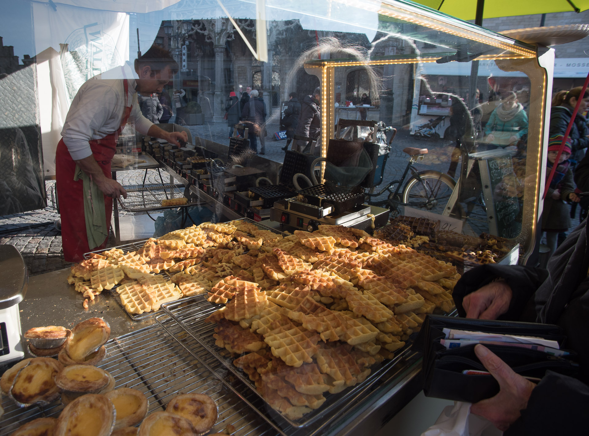 Los sábados un animado mercado ocupa la plaza con productos de todo tipo, desde los tradicionales gofres...