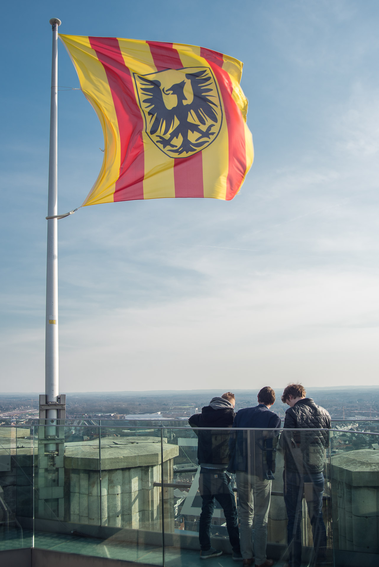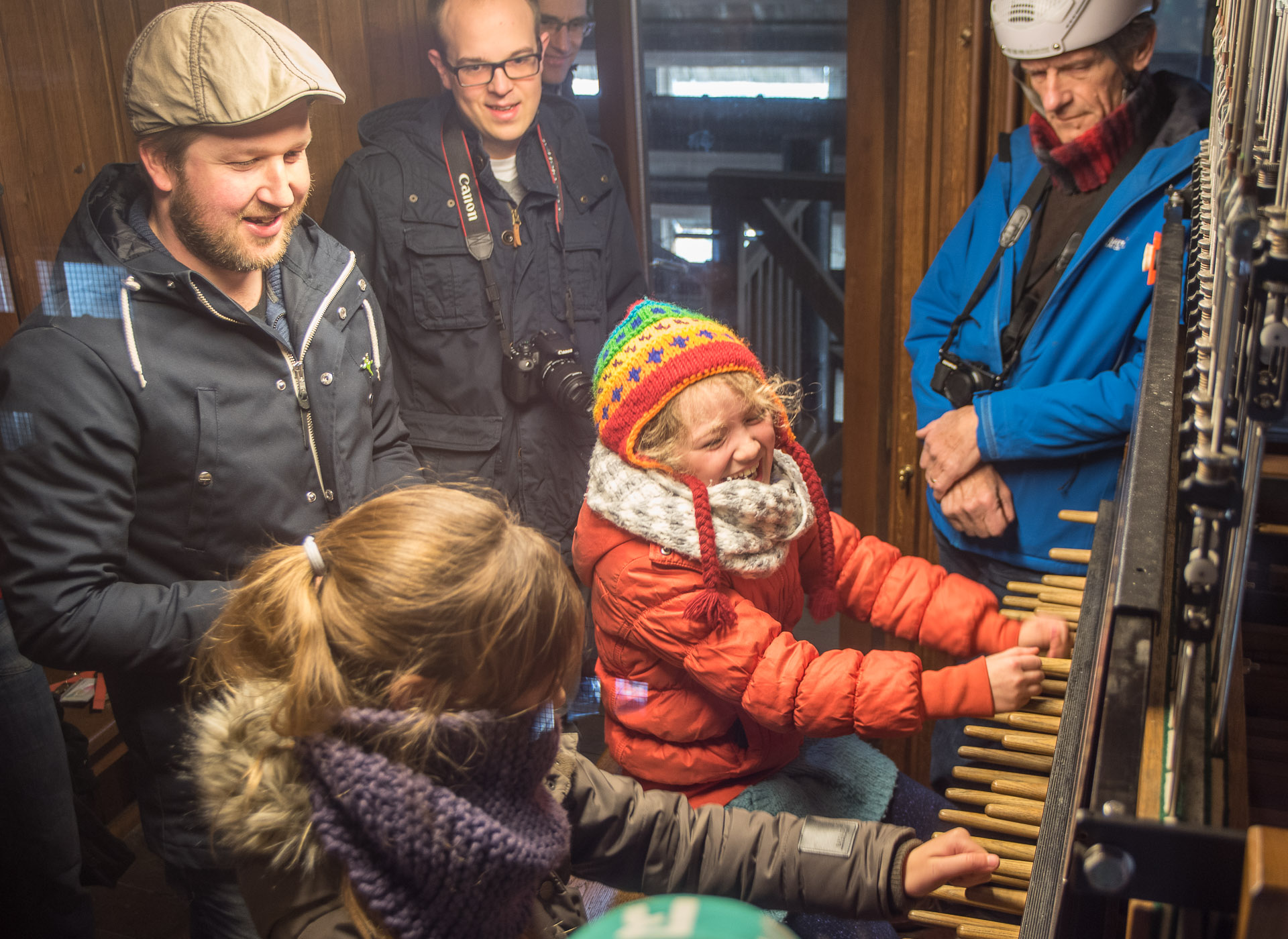 Los carillones son una tradición musical especialmente arraigada en la ciudad, aquí vemos a unos niños disfrutando de sus primeras notas en el gran carillón de la Catedral