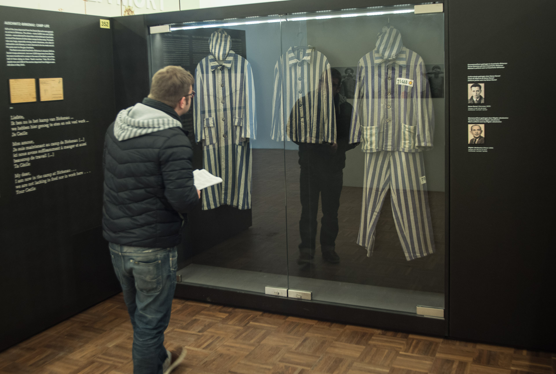 Un visitante contempla una de las vitrinas con uniformes auténticos de los campos