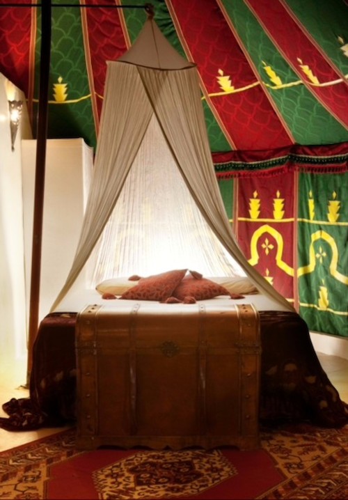 En el Refugio Marnes (Alicante) nos encontramos con una auténtica Jaima hecha por encargo a un especialista en este tipo de tiendas de campaña marroquíes. El interior está decorado al más puro estilo beduino y tiene baño y cocina propios. Una ambiente propio de las Mil y una noches.