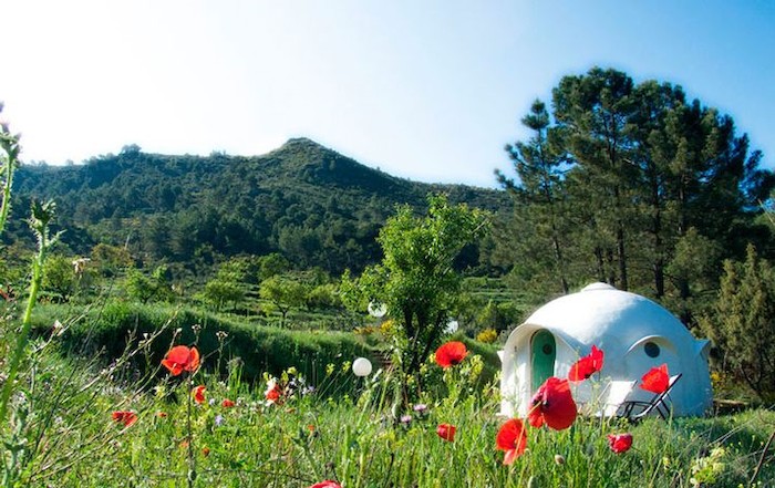 Otro Mundo, en Fuente del Taif, Albacete, dispone de dos casas blancas en forma de cúpula. La oportunidad perfecta para rodearse de naturaleza sin estar incómodos, ya que dispone de baño en suite con ducha solar e inodoro de compostaje.