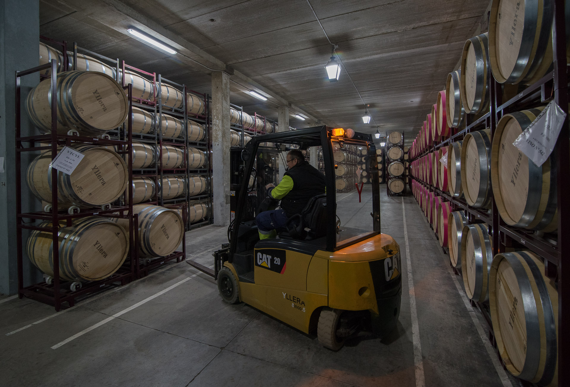 La sala de barricas en la que los vinos Yllera maduran y van cogiendo cuerpo