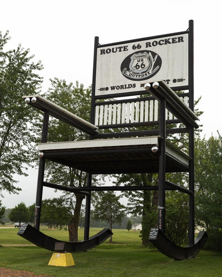 La mecedora más grande del mundo se encuentra en la ruta y se llama “The Route 66 Rocker”. Se encuentra en Fanning, Missouri.