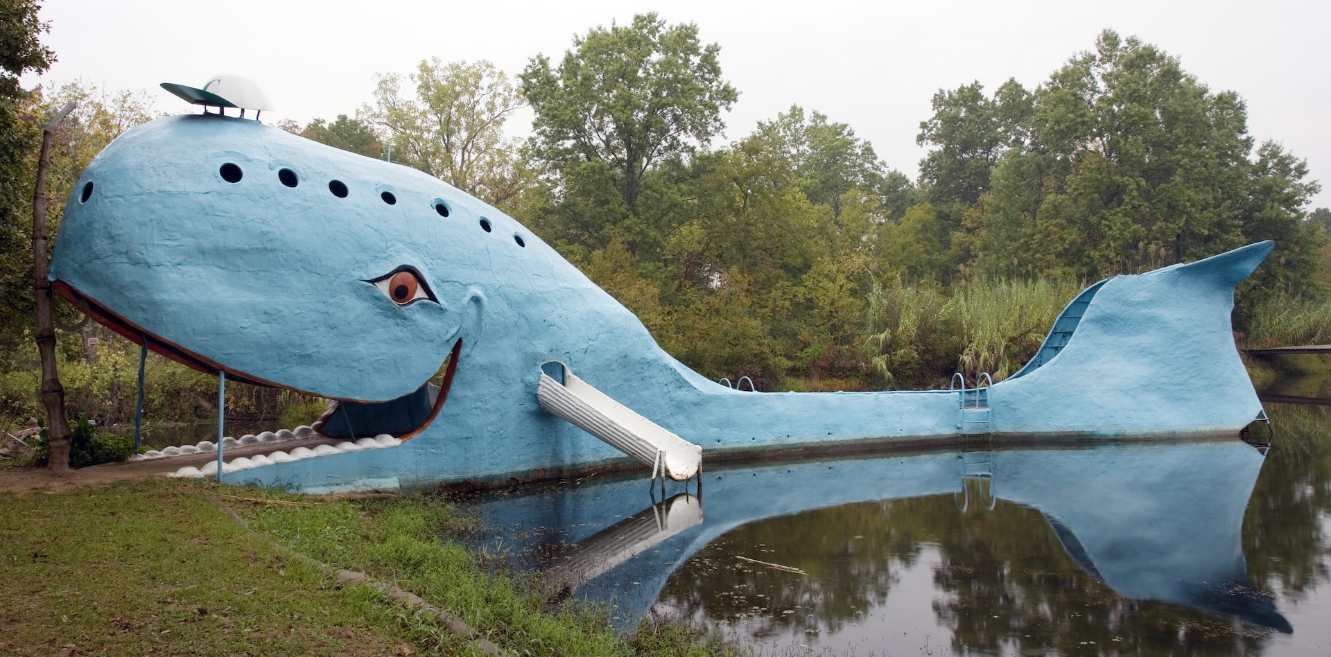 En Catoosa (Oklahoma) una de las atracciones que mayor expectación crea es esta enorme ballena que sirve de tobogán y fue construida en la década de los 70.
