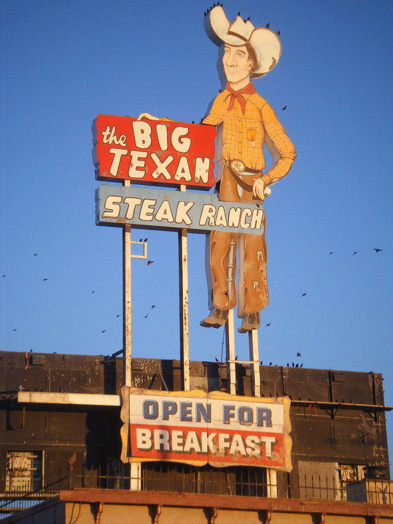 El restaurante The Big Texan abrió sus puertas en 1960 y entre sus especialidades se encuentra un bistec de dos kilos.