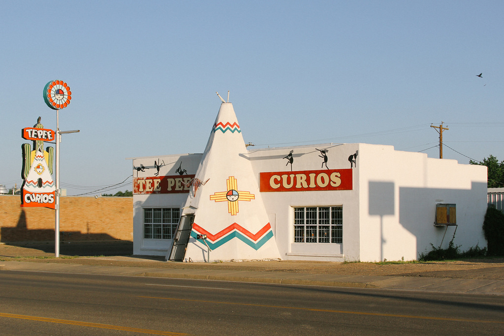 Tee Pee Curios es una tienda de souvenirs y arte de los indígenas americanos con un gran teepee como sello de identidad. Se encuentra en Tucumcari, New Mexico.