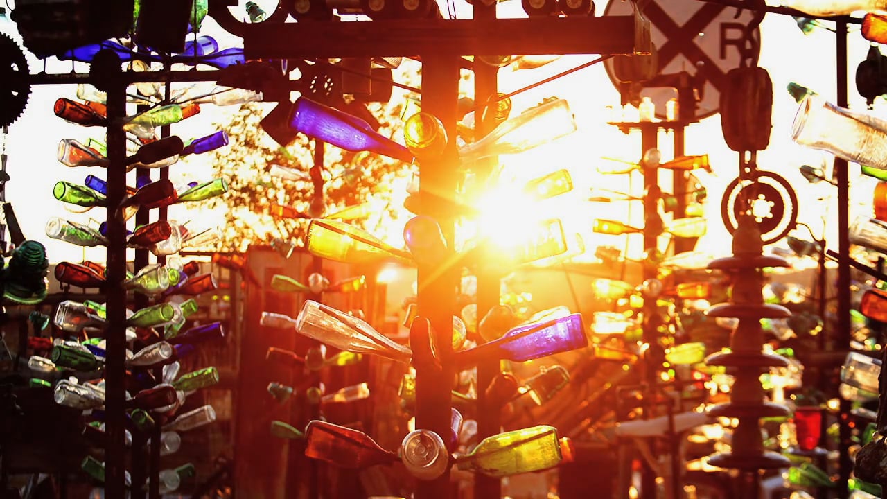 Elmer Long, un ciudadano americano, creó en Helendale (California) la Bottle Tree Ranch con botellas que heredó de la colección de su padre.