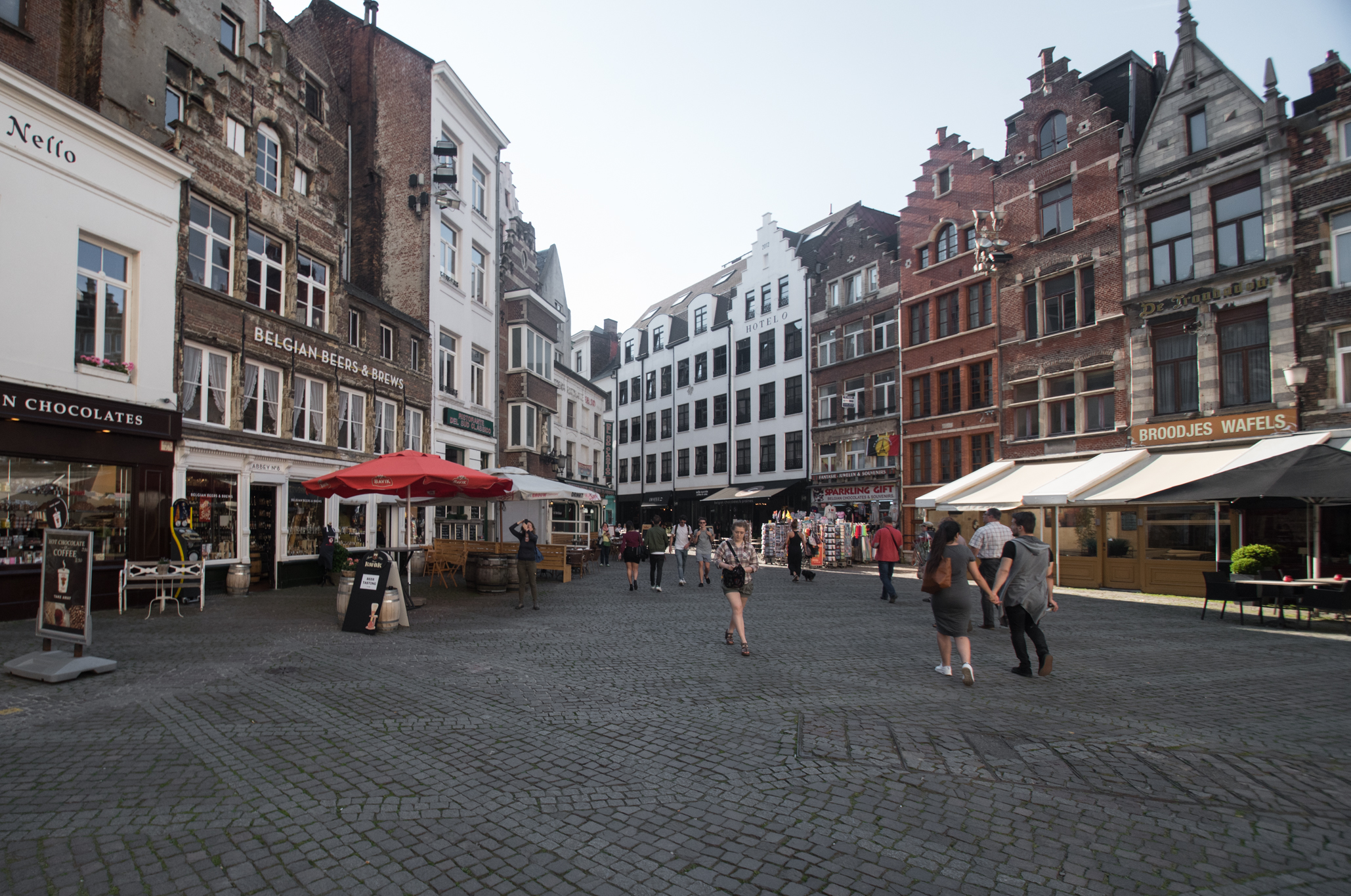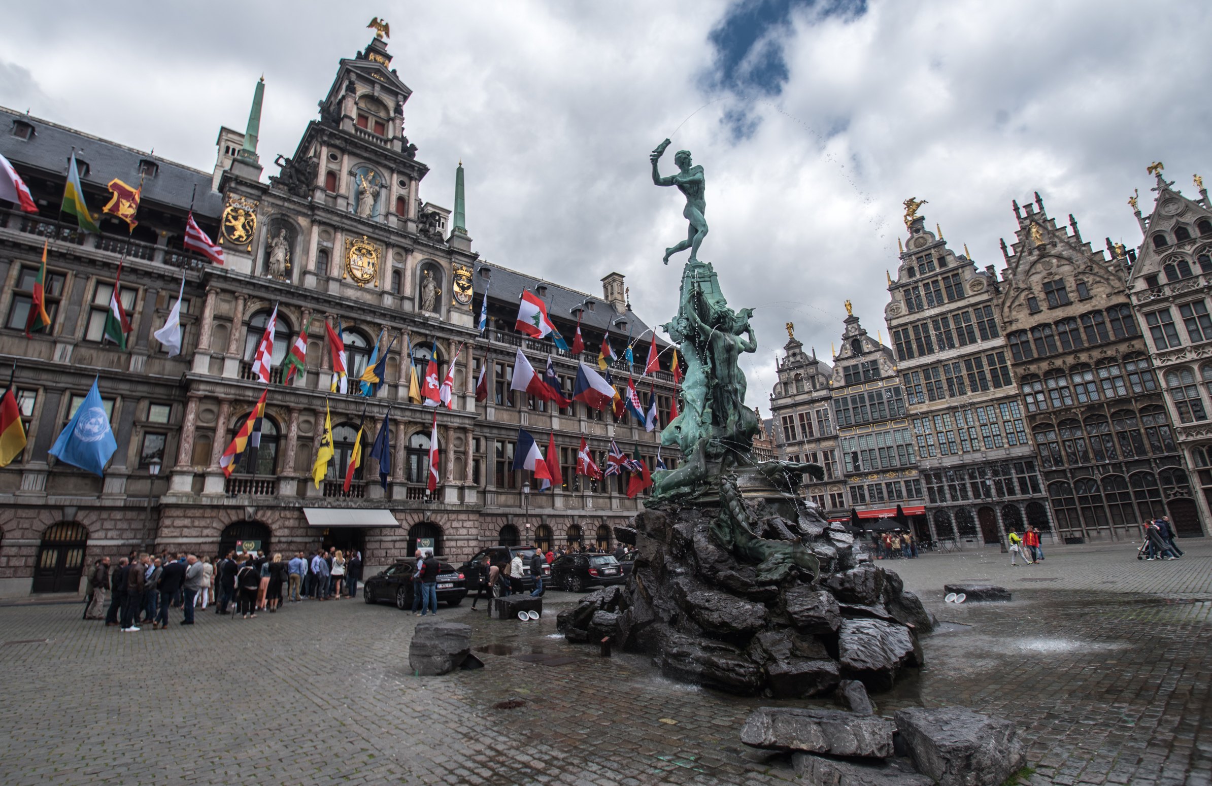 La Grote Markt o Plaza del Mercado está rodeada de preciosas casas gremiales y el Ayuntamiento, donde descubrir entre sus escudos el de Felipe II. En el centro de la plaza, una estatua representa a Brabo, que arroja la mano del gigante Antigoon al río Escalda. La leyenda es el origen del nombre de la ciudad de Amberes (‘arrojar mano’).