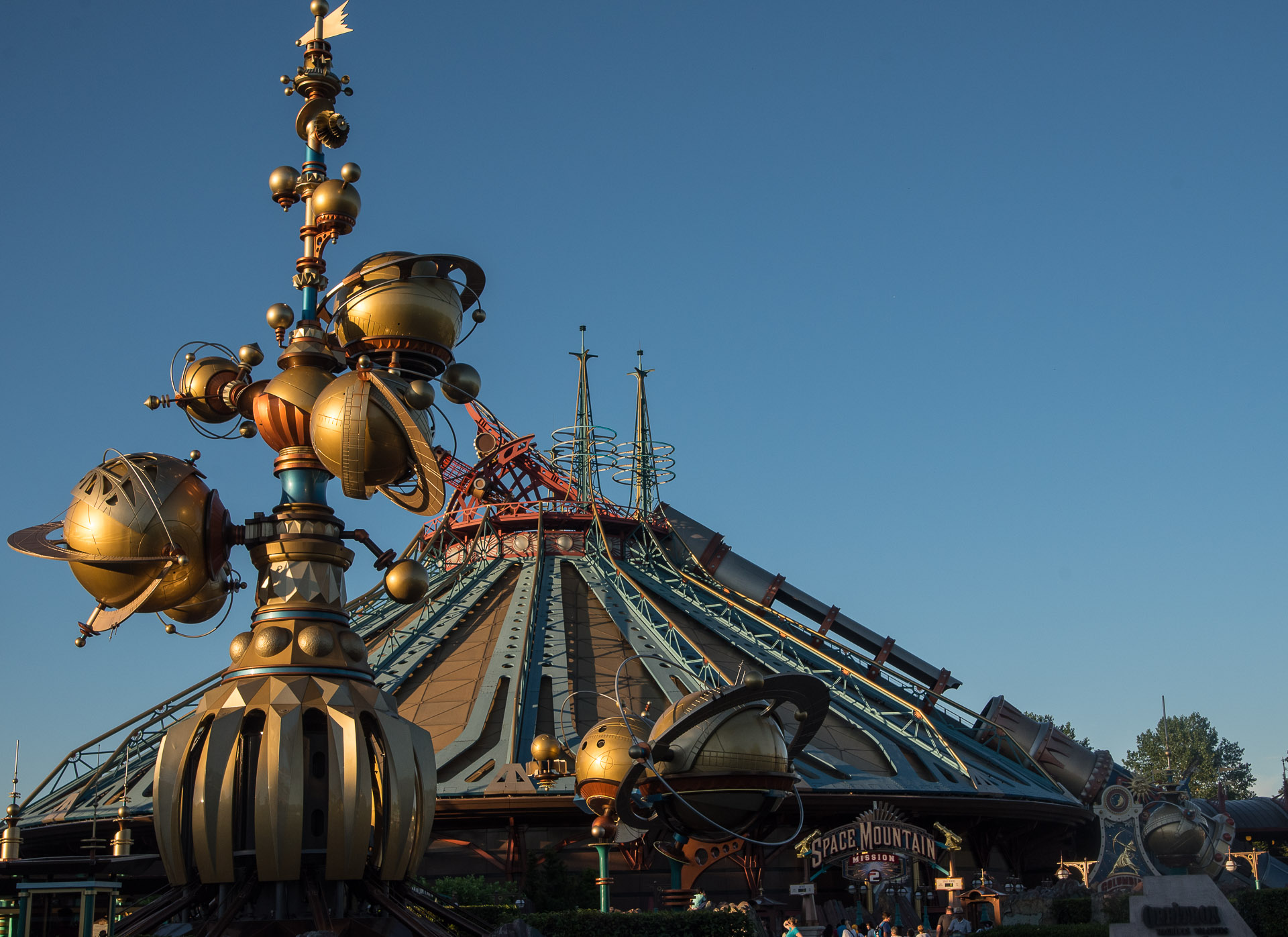 Otra imagen de la Space Mountain y, en primer plano, otra atracción: el Orbitron