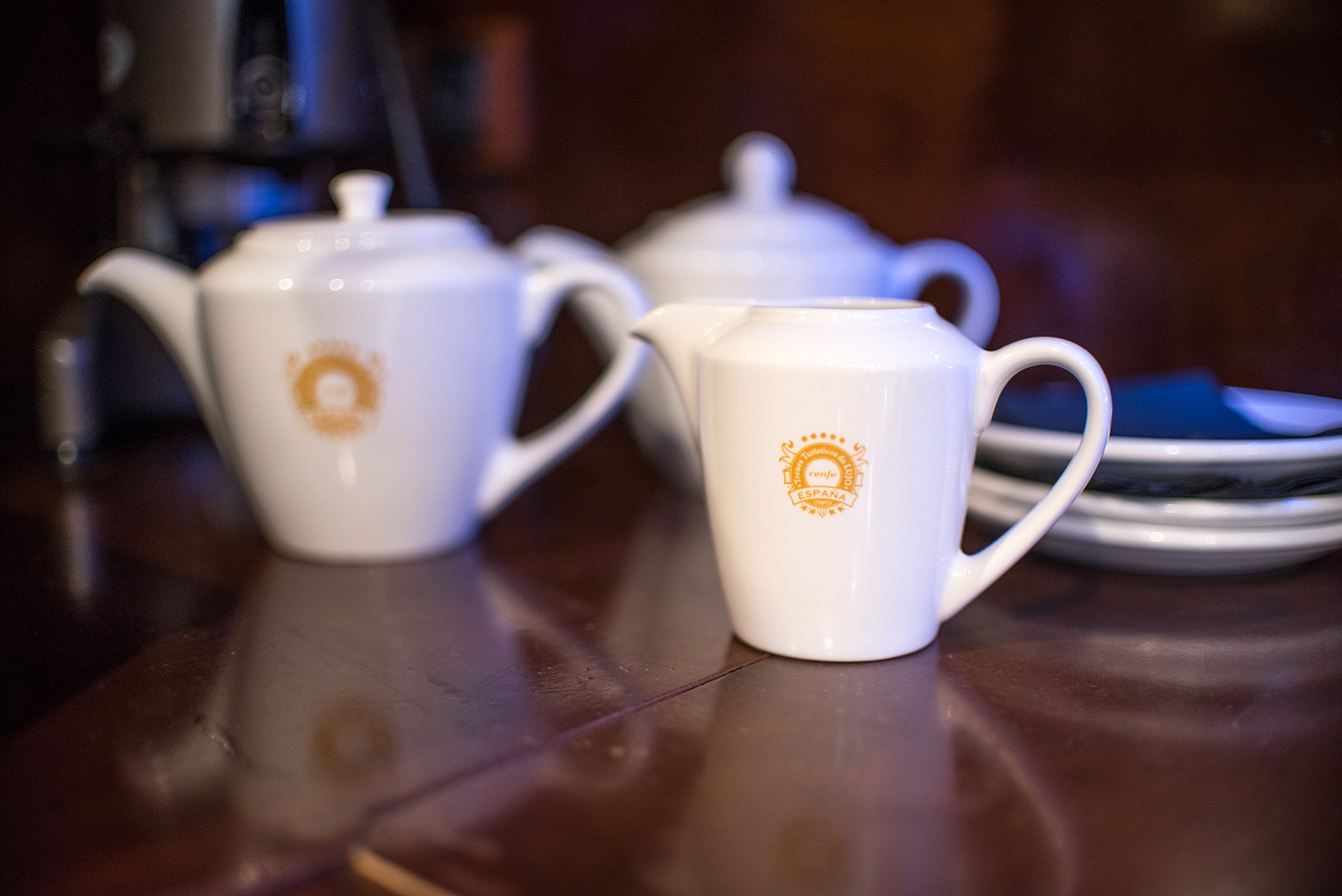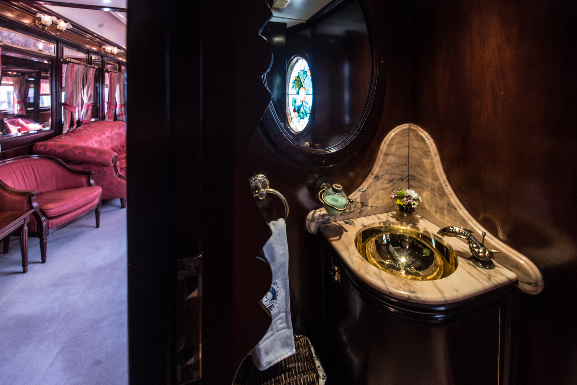 En las tazas de café, la vajilla y todos los utensilios de cocina están decorados con el logotipo del tren de lujo. Nada se olvida en este tren tan exclusivo.