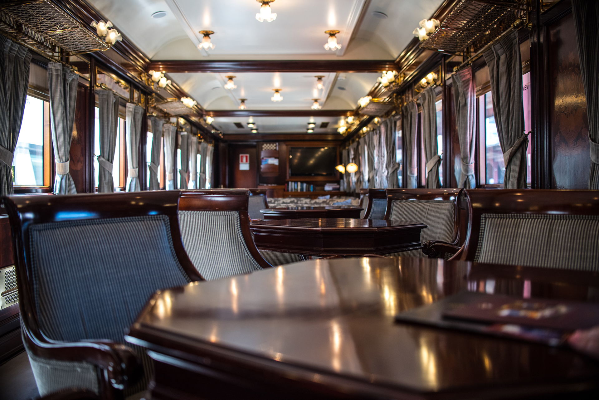 Otra vista del segundo vagón salón. En este caso desde las mesas.