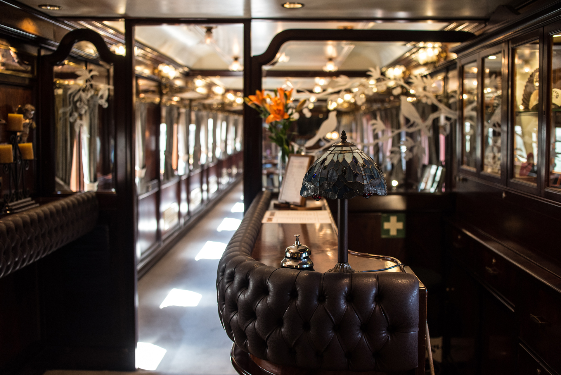 La entrada a la zona de los vagones dormitorio. El detalle de la campanilla sobre la mesa recuerda que estamos en un verdadero hotel, aunque sea sobre raíles.