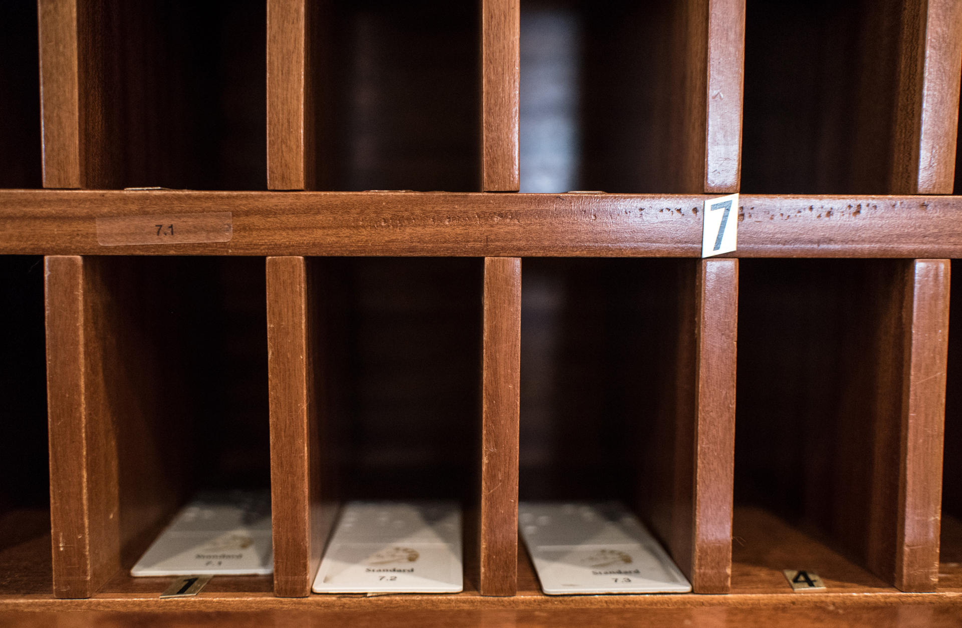 Al igual que en cualquier hotel, el Al-Ándalus tiene una recepción y una estantería dedicada a almacenar las llaves de cada habitación.