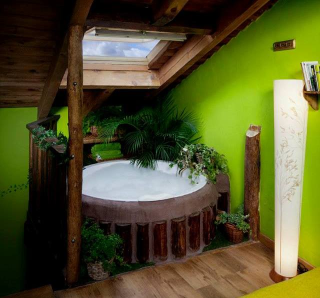 En Guadalajara, más concretamente en Monasterio, te espera este nidito de amor otoñal en el que disfrutar de la pareja y del encanto de lo rural. Tiene una cama de matrimonio frente a la que se encuentra su bañera de hidromasaje que le aporta todo el romanticismo que necesitas, sin olvidar su chimenea de forja. En el salón la piedra es protagonista, y combina a la perfección con el toque rústico de la chimenea. Además, la cocina es americana y dispone de todo tipo de electrodomésticos. Funcional y romántico, ¿se puede pedir más?