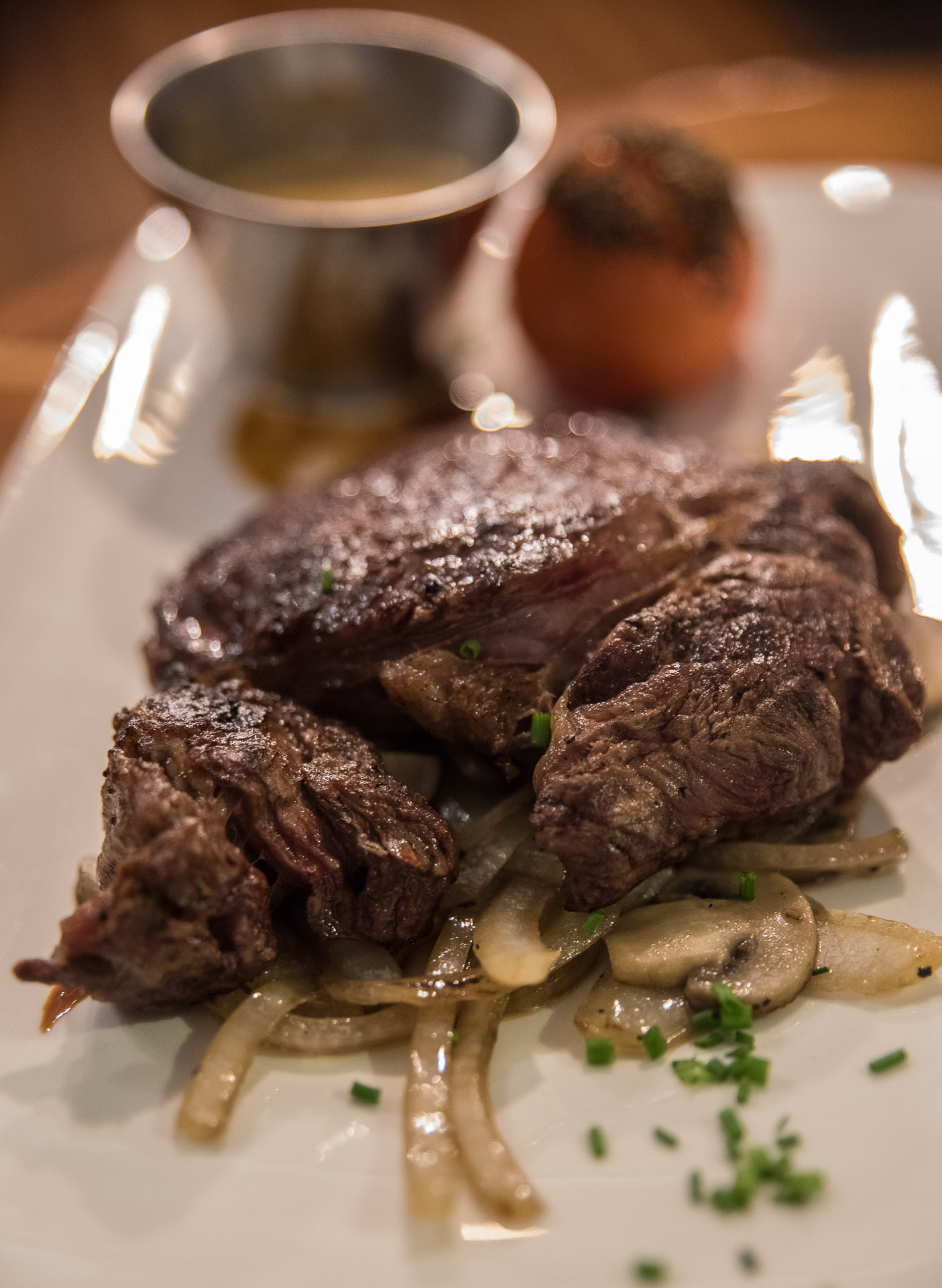 ... como de las granjas cercanas, que proporcionan carnes excelentes como esta que probamos en el restaurante del Trident Hotel