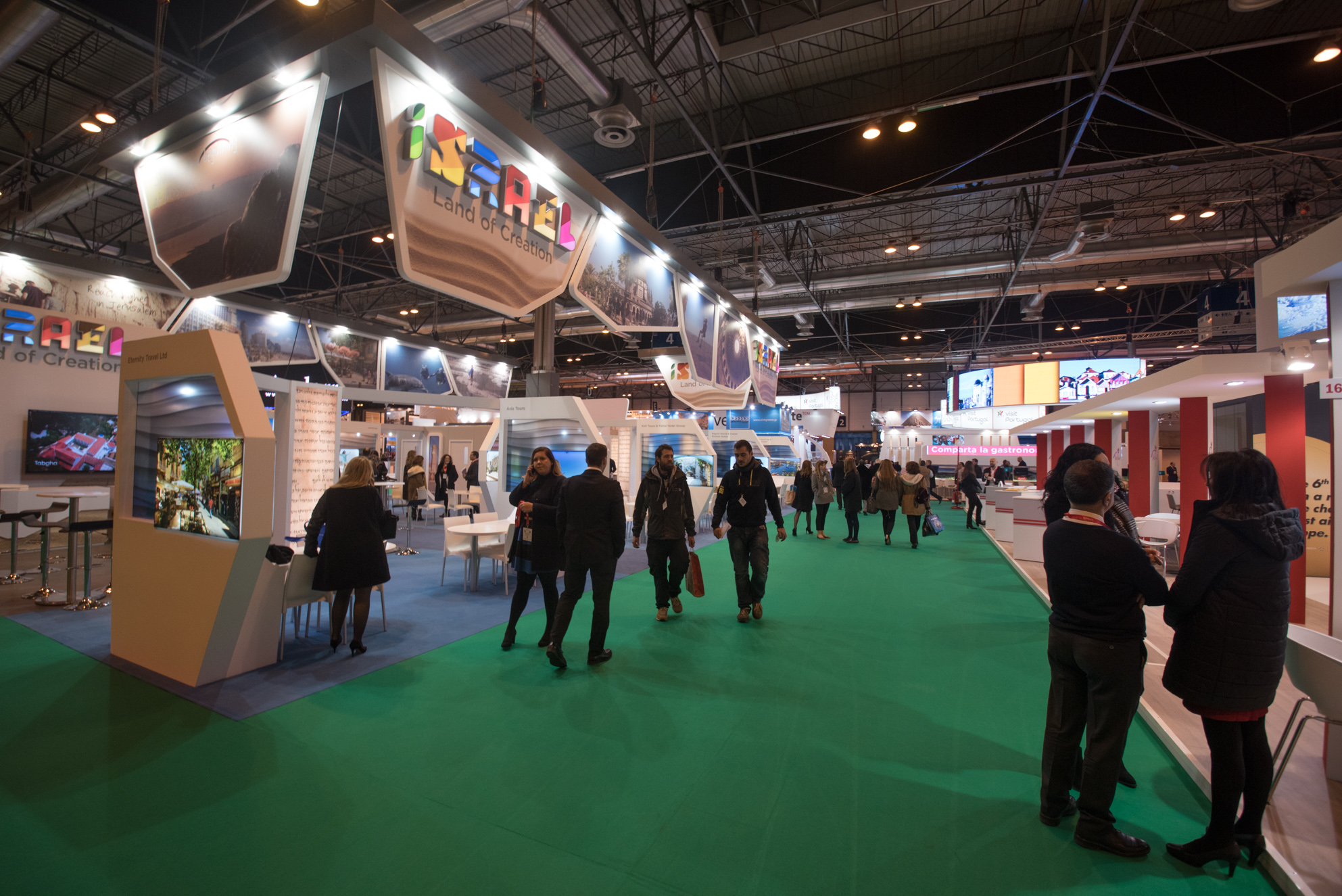 El stand de Israel donde se ha presentado hoy en Fitur los city breaks a Tel Aviv y Jerusalén y su oferta de turismo activo y de naturaleza en la zona del desierto del Negev y Eilat.
