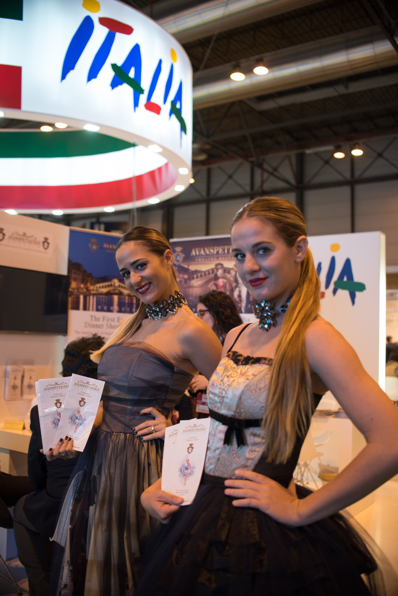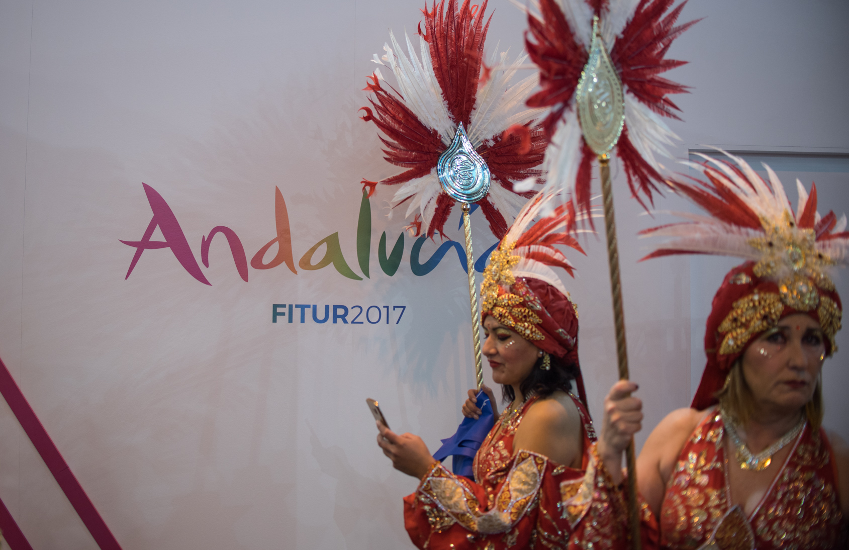 Dos azafatas disfrazadas para promocionar uno de los stands de Andalucía en Fitur.