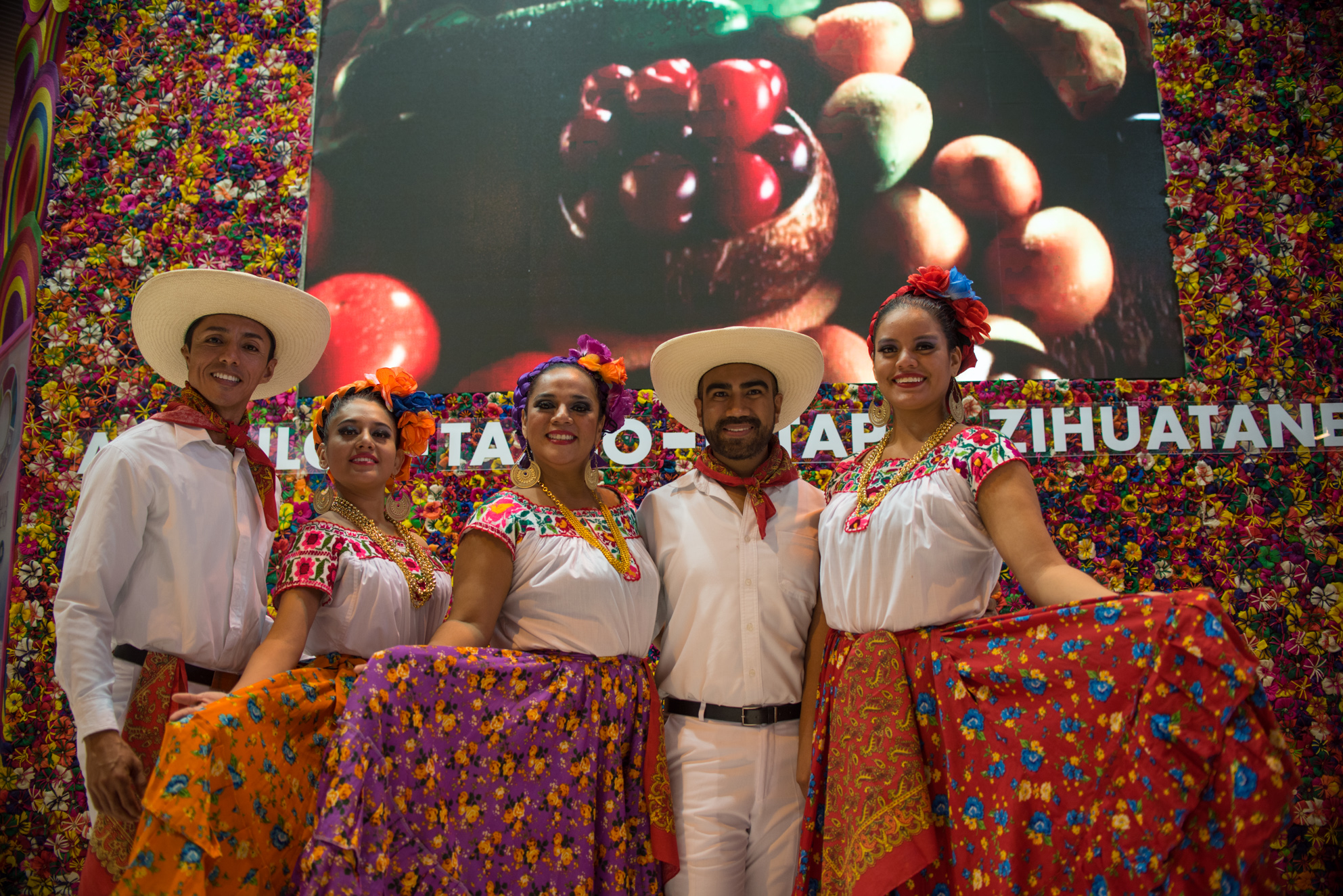 Varios actores vestidos con el traje típico de la zona de Guerrero, en México.