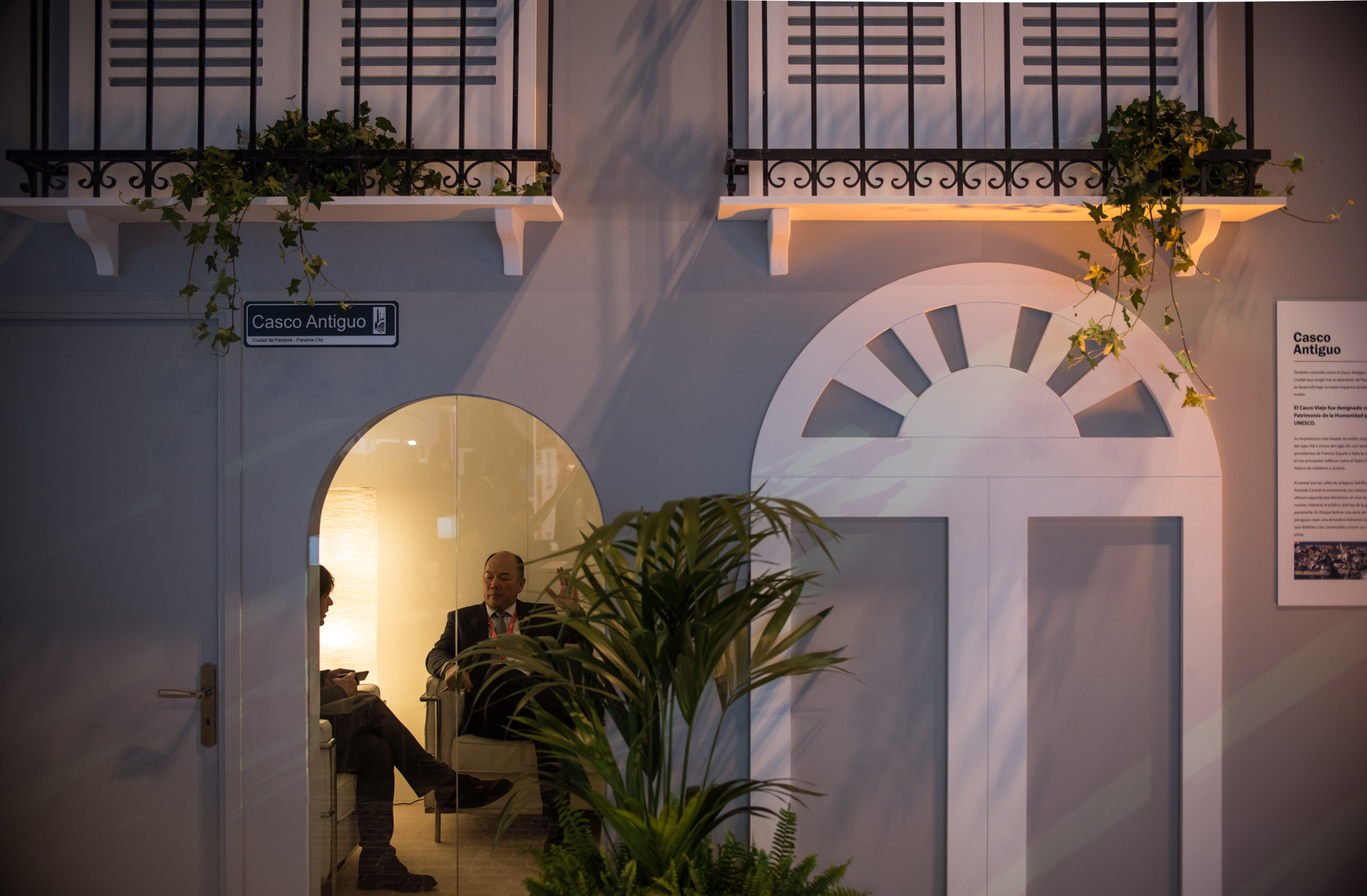 Curioso y original stand de Panamá simulando el casco antiguo de la ciudad de Panamá.