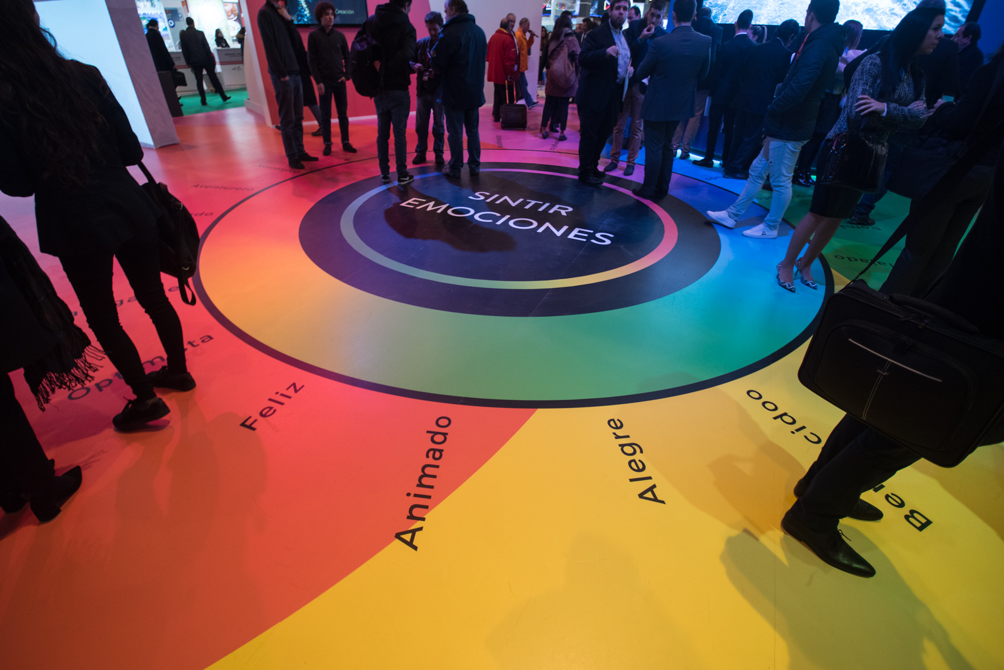 "Sentir emociones" en Portugal. Colorido suelo de la zona dedicada a nuestro país vecino y que está muy presente en Fitur.