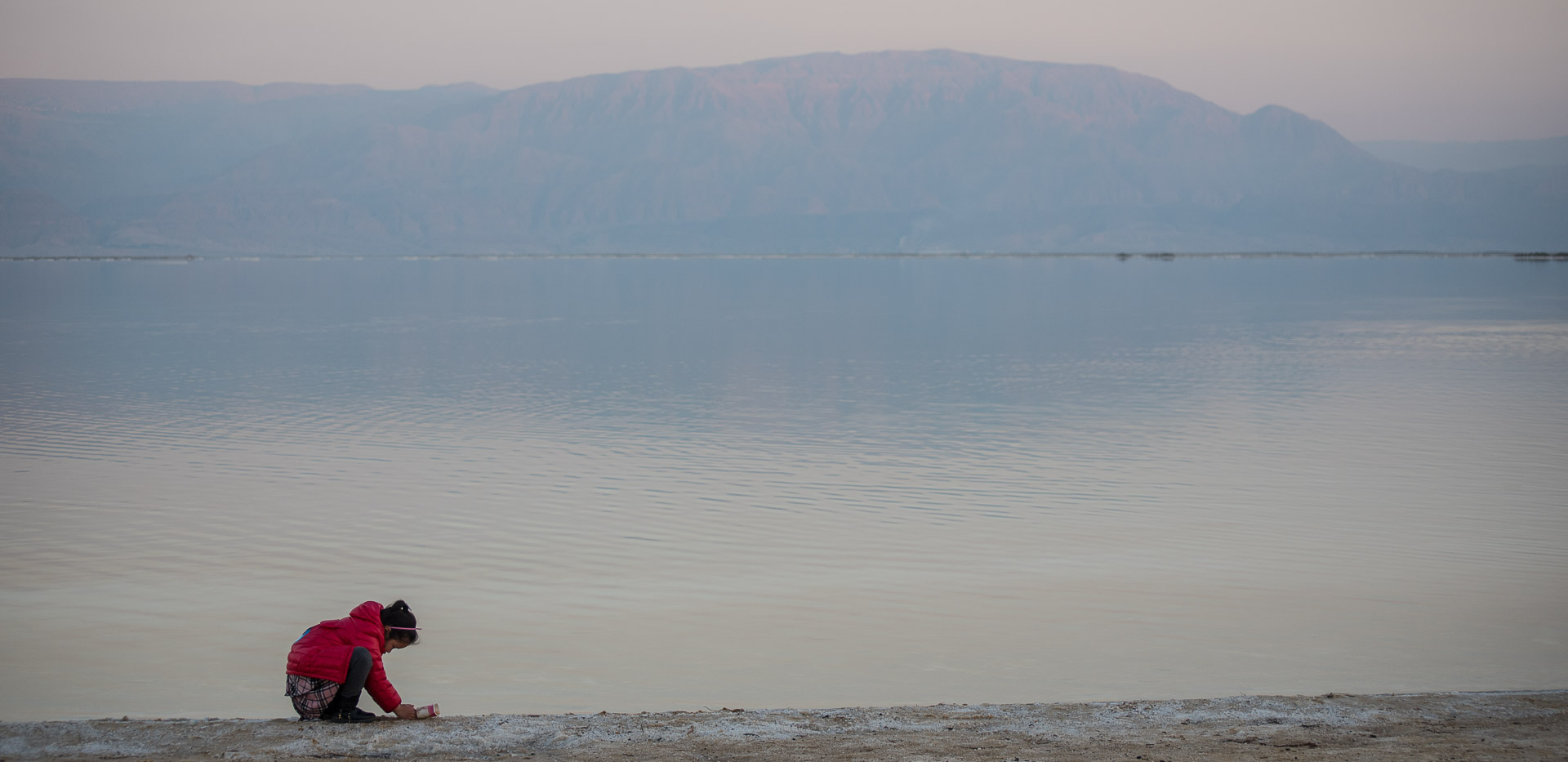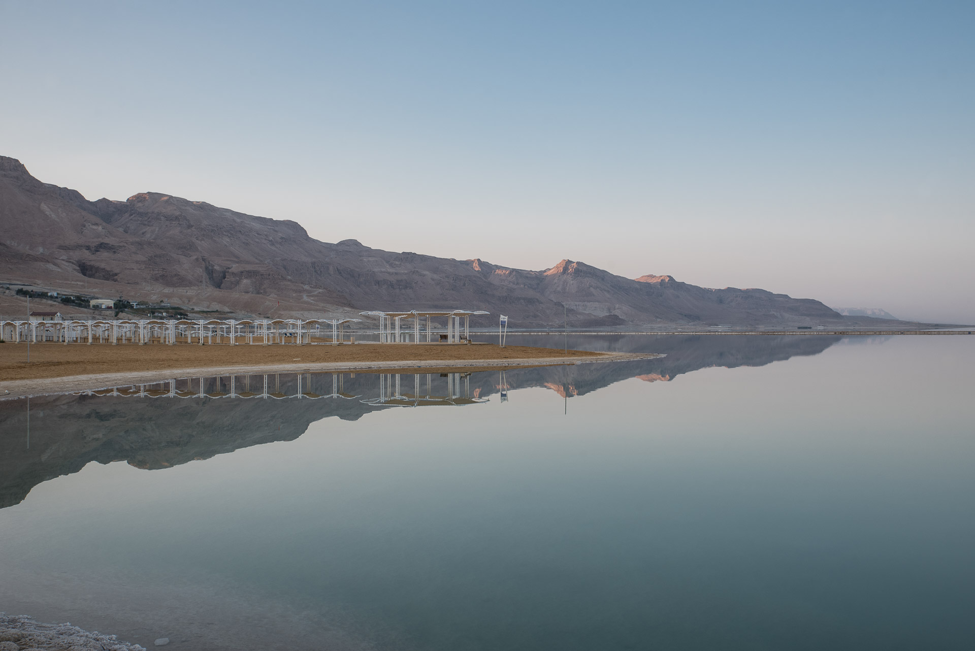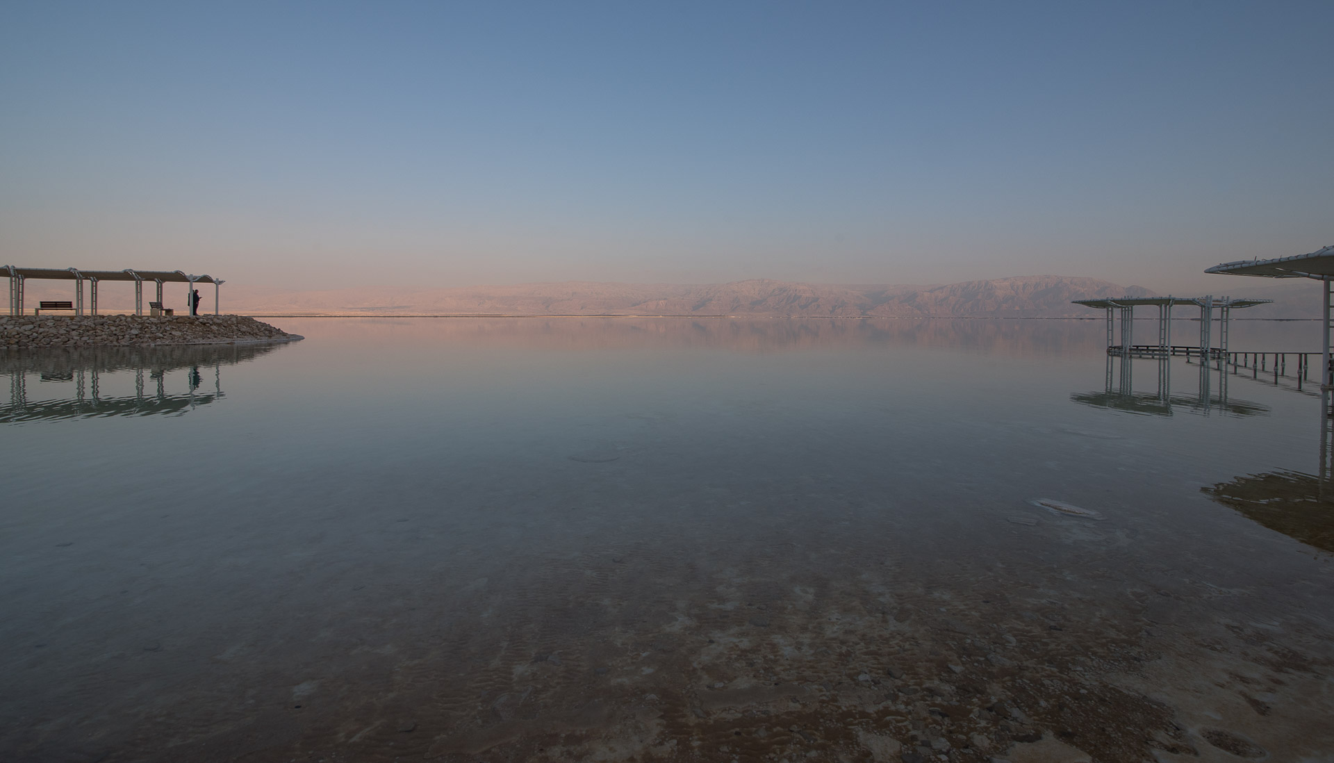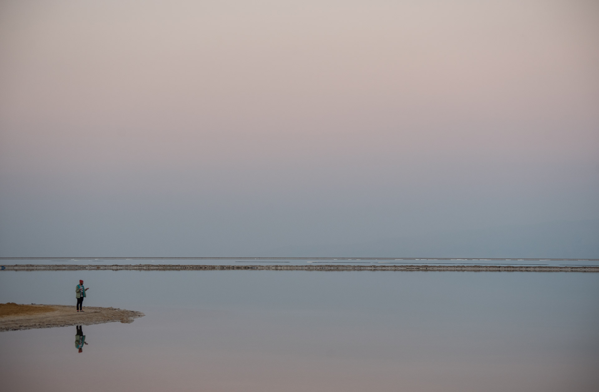 Una imagen que refleja la extraña atmósfera de un atardecer en el Mar Muerto
