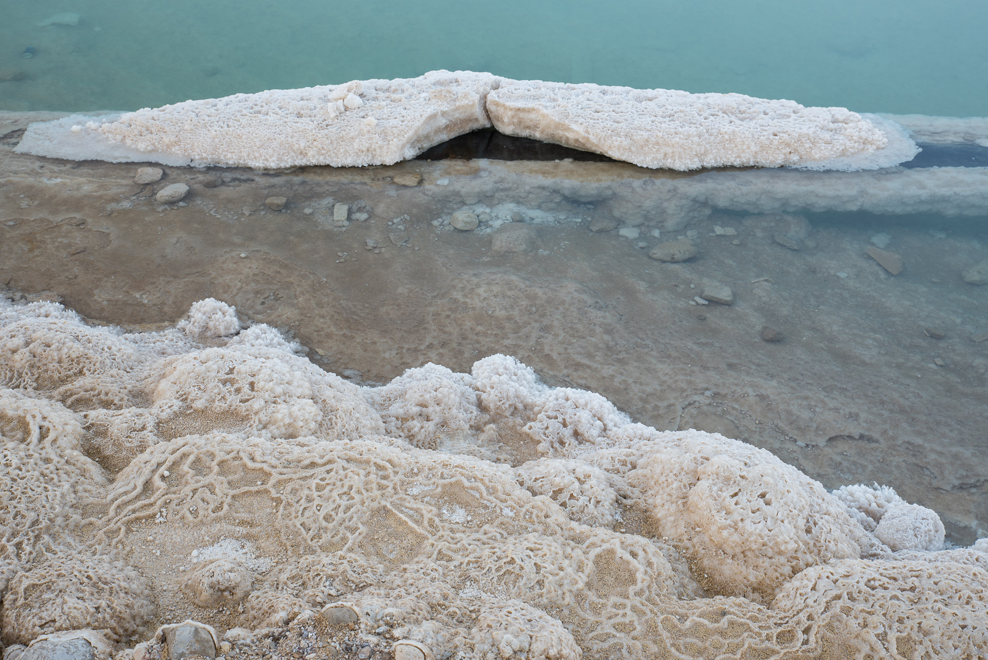Las formaciones de la sal en el borde del agua son la mejor explicación posible sobre la peculiaridad del agua de este mar