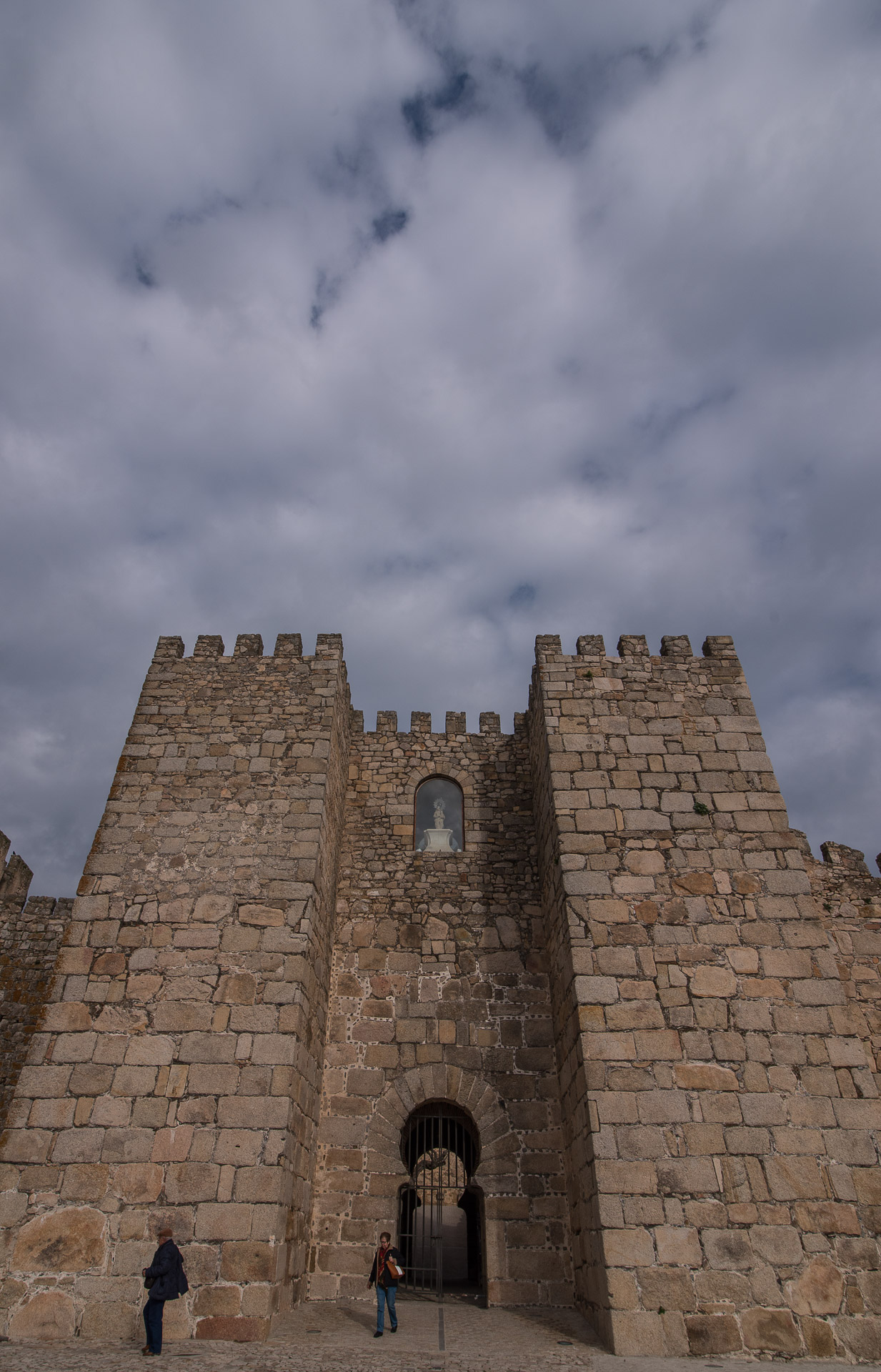 Las puertas del castillo con el arco de herradura que desvela un origen musulmán y la imagen de la Virgen de la Victoria en lo alto