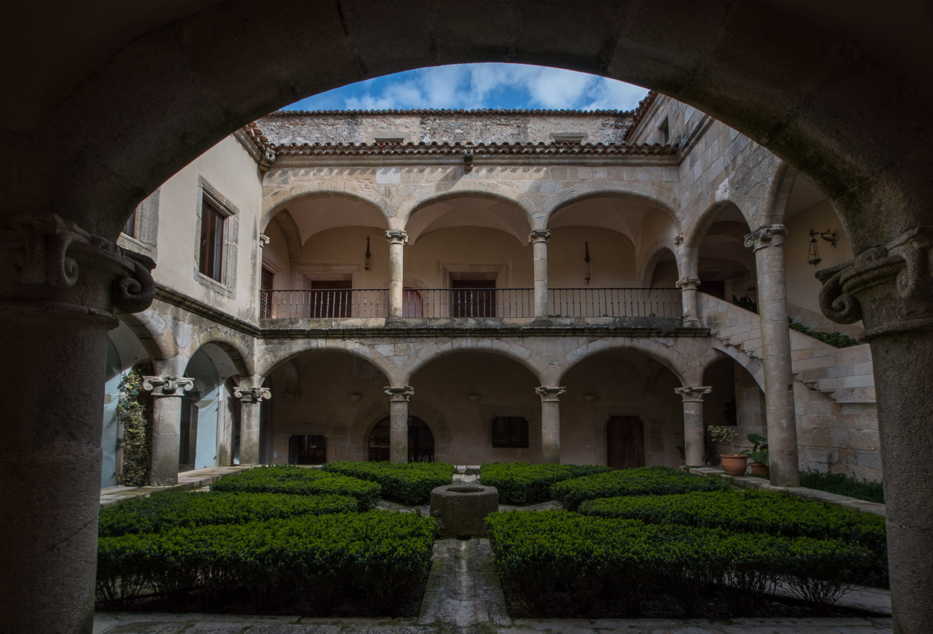 El pequeño pero bellísimo claustro de lo que hoy en día es la Fundación Xavier de Salas, que ofrece una interesante exposición permanente de artesanía indígena iberoamericana