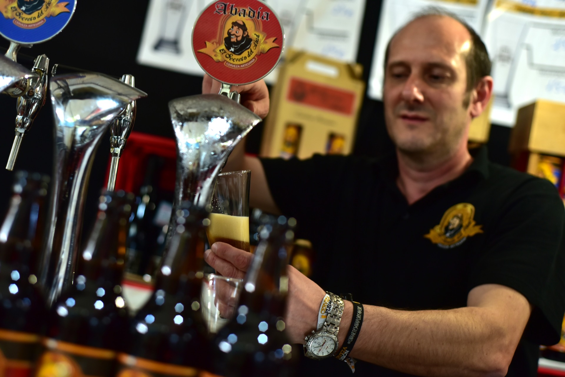 Julio, uno de los dueños de la cervecera participante El Secreto del Abad, sirviendo una de sus cervezas.