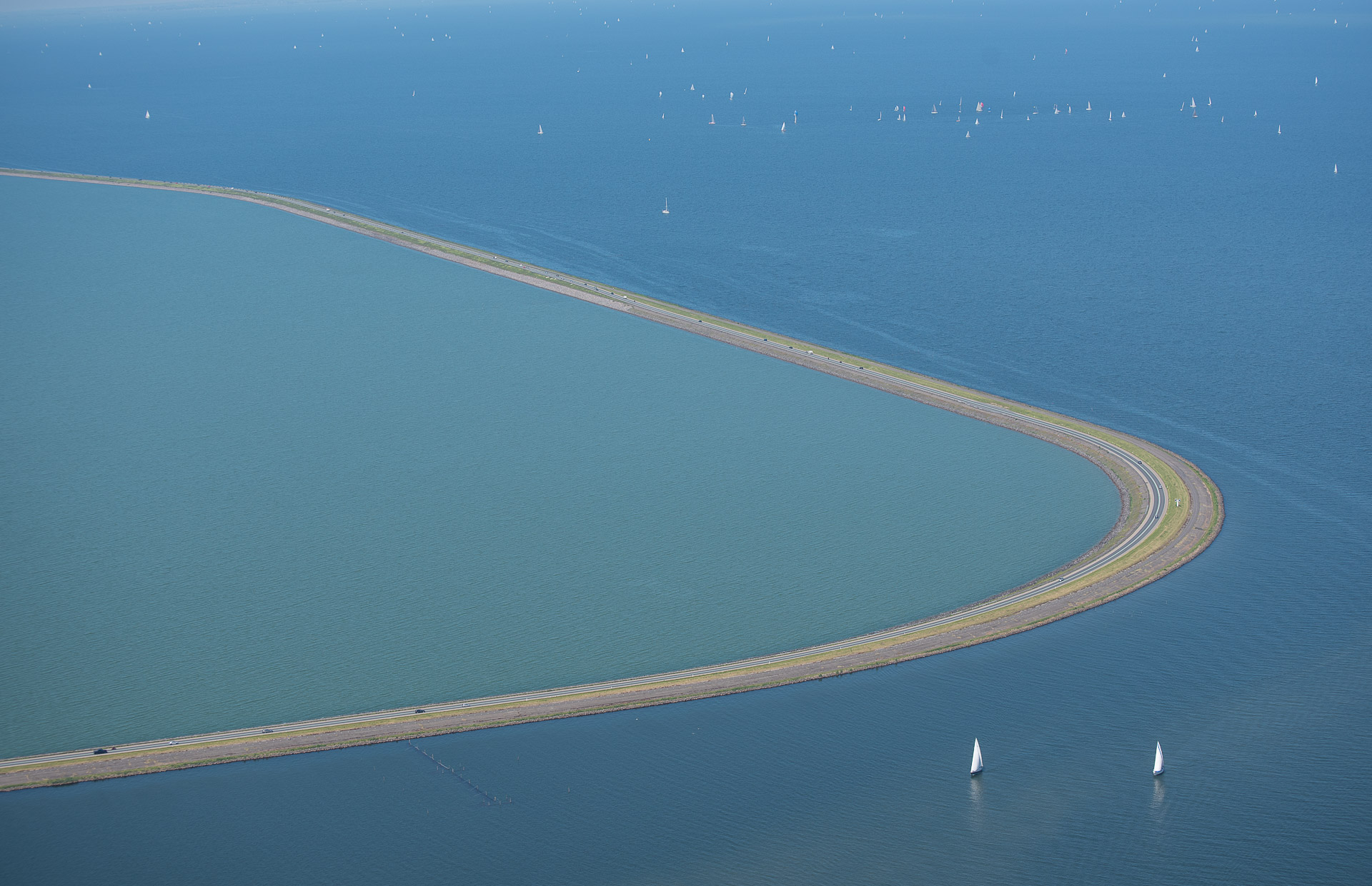 El gran dique que separa el Markermeer y el IJsselmeer, los dos lagos que antes eran el Zuiderzee o Mar del Sur