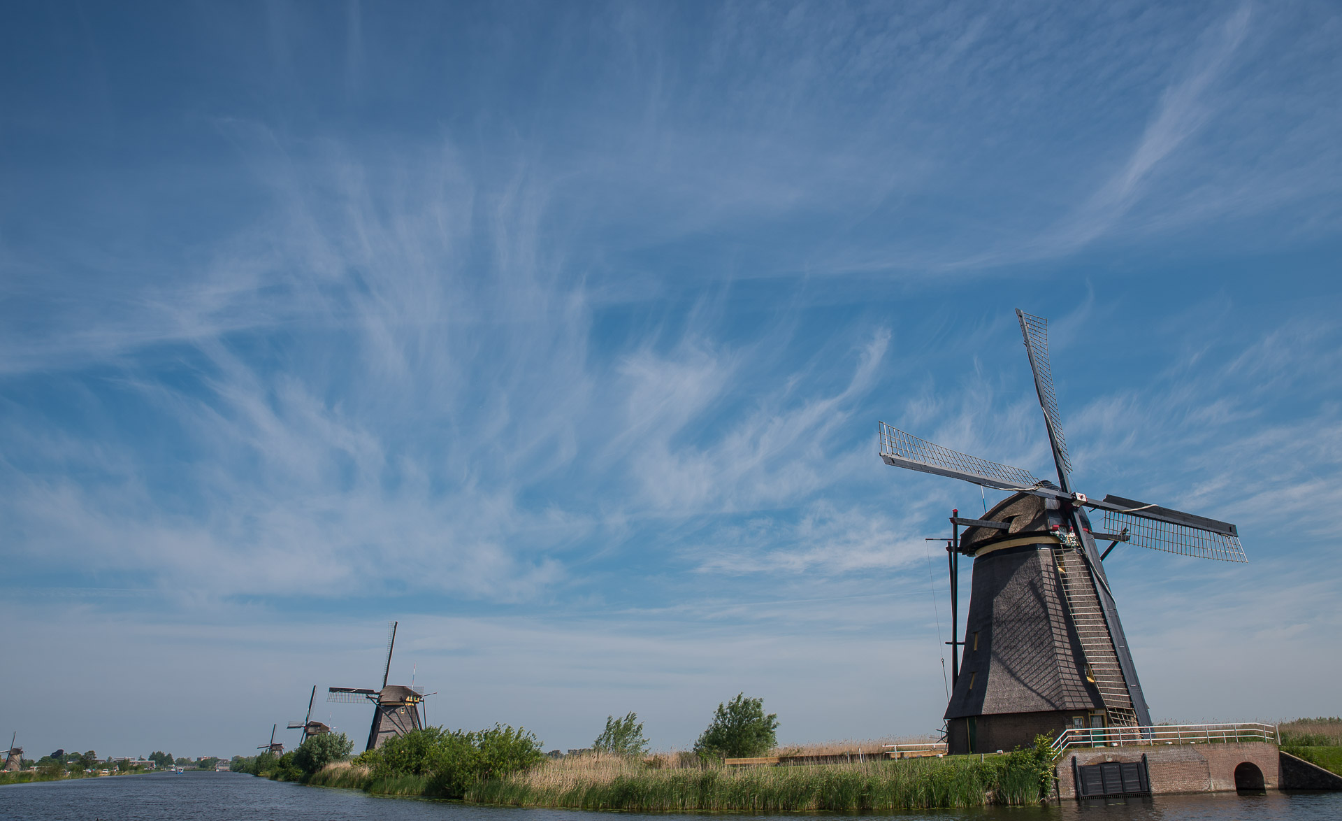 Entre Dordrecht y Rotterdam, el conjunto de molinos de viento del Kinderdijk es uno de los lugares idóneos para conocer el pasado de Holanda.
