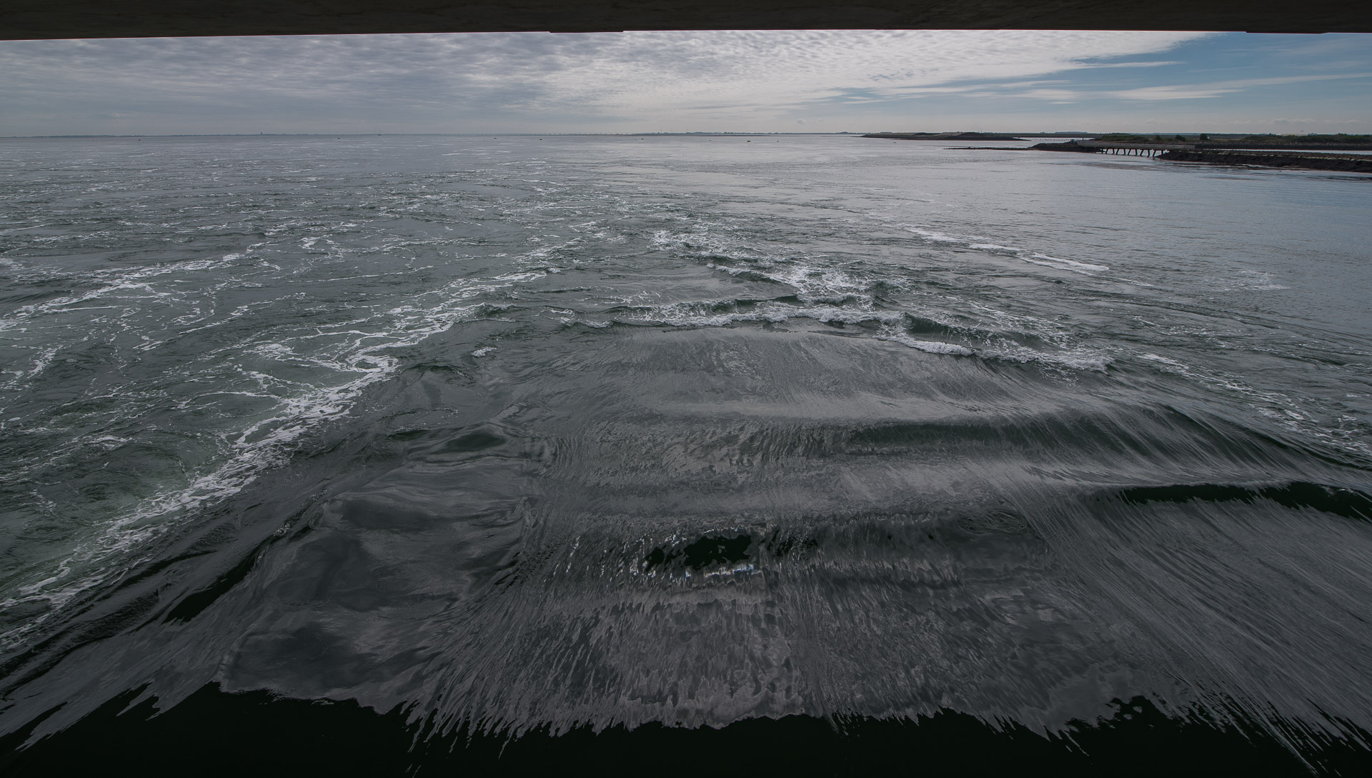 Sobre las compuertas Oosterscheldekering y simplemente con la fuerza de una marea normal se puede uno hacer una idea de la fuerza del mar y de la amenaza real que supone