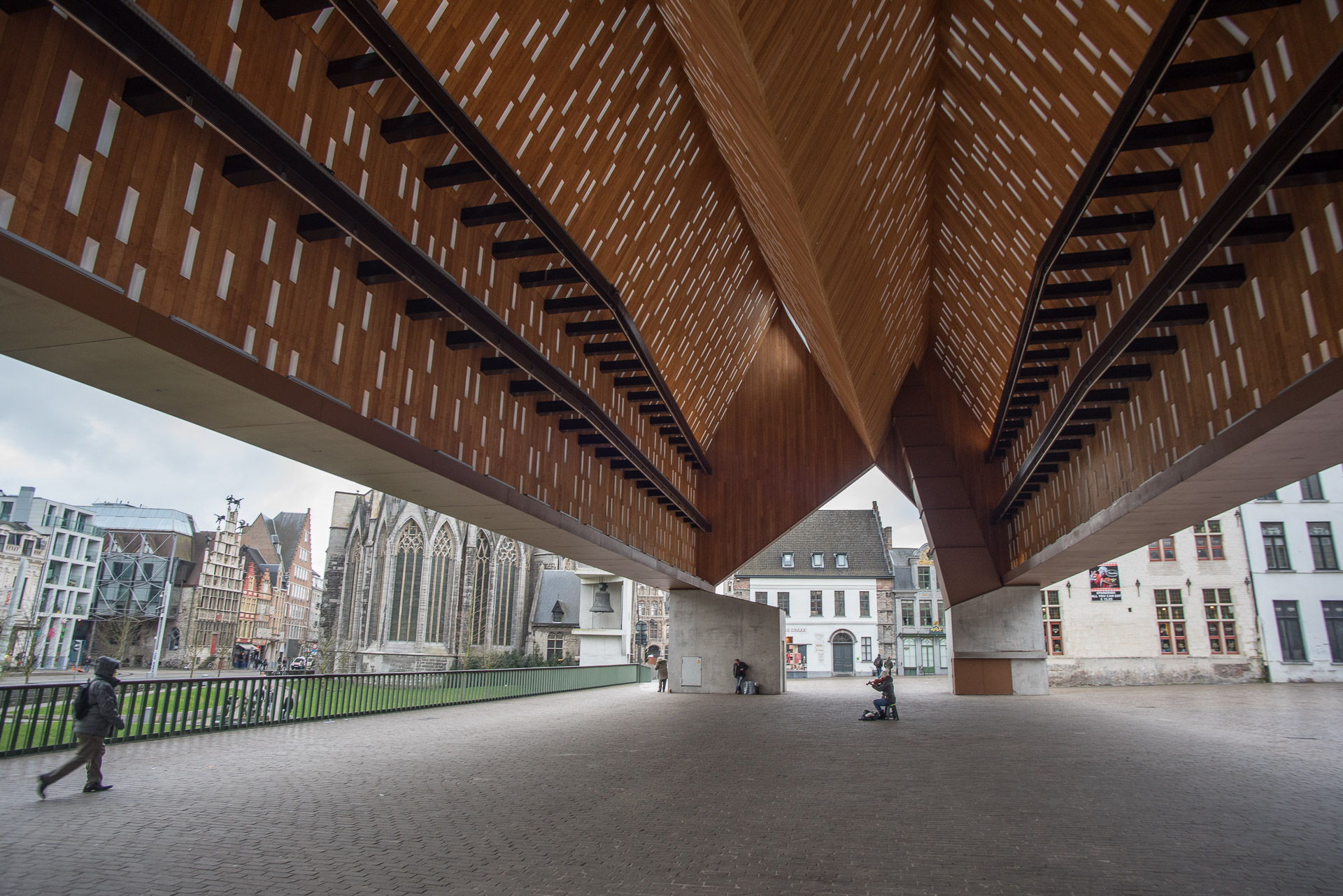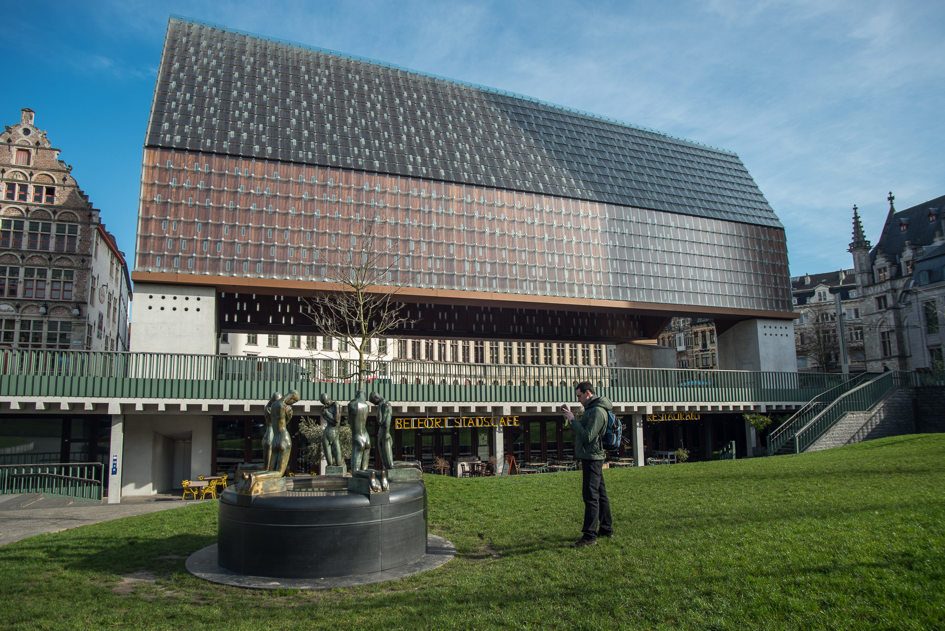 El Pabellón Municipal, una veleidad moderna en el corazón medieval de Gante.