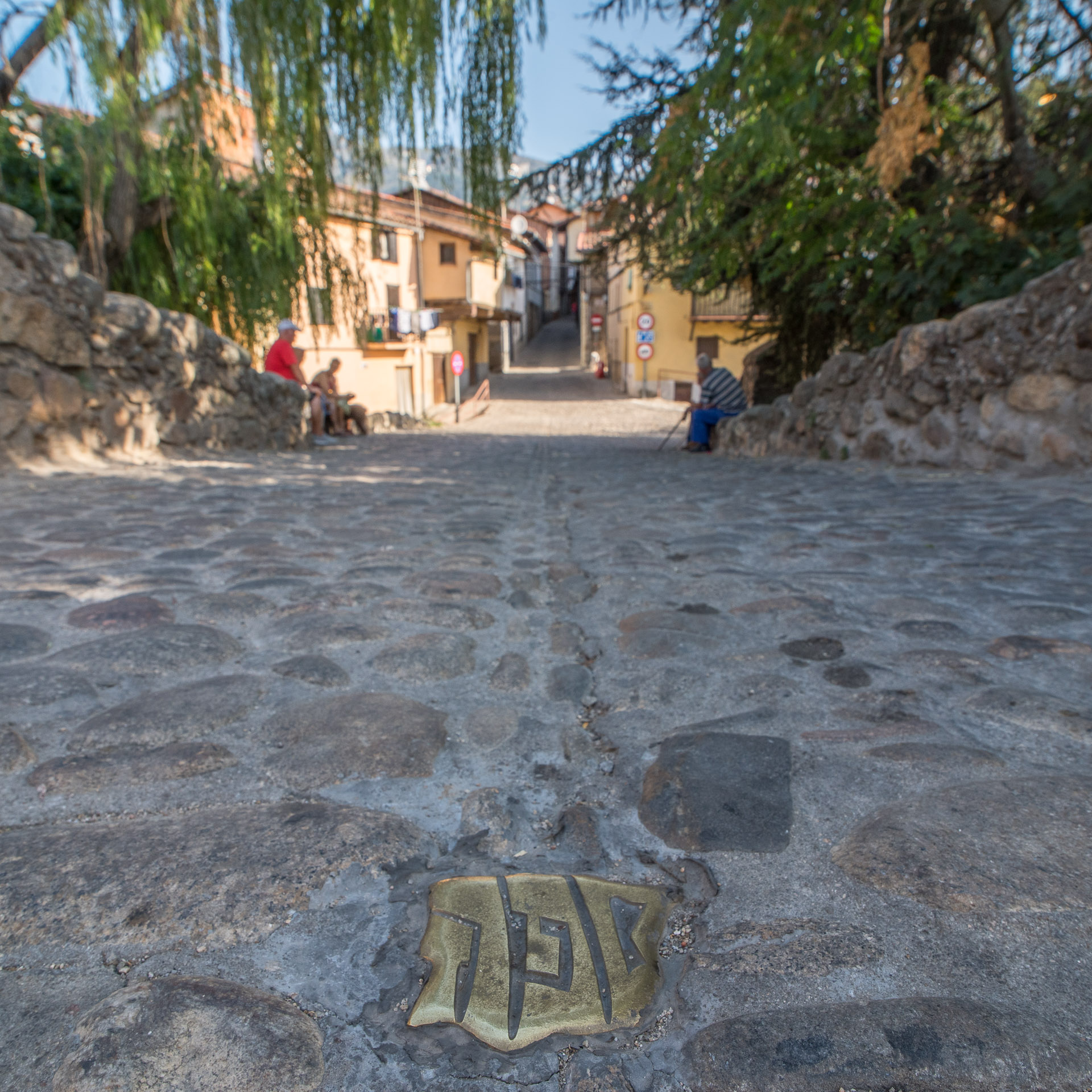 El símbolo de la Rede de Juderías de España, sobre el Puente de la Fuente Chiquita.