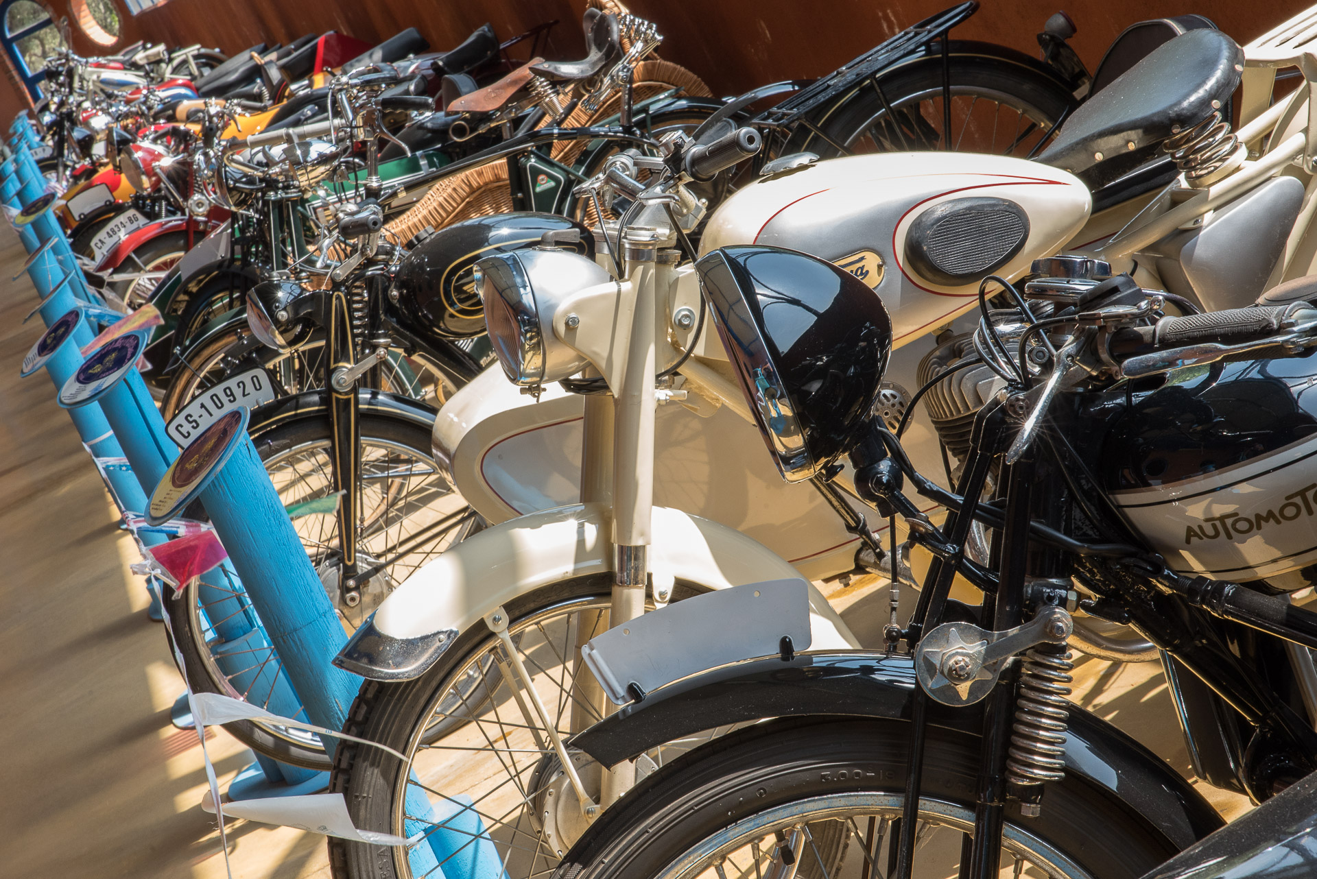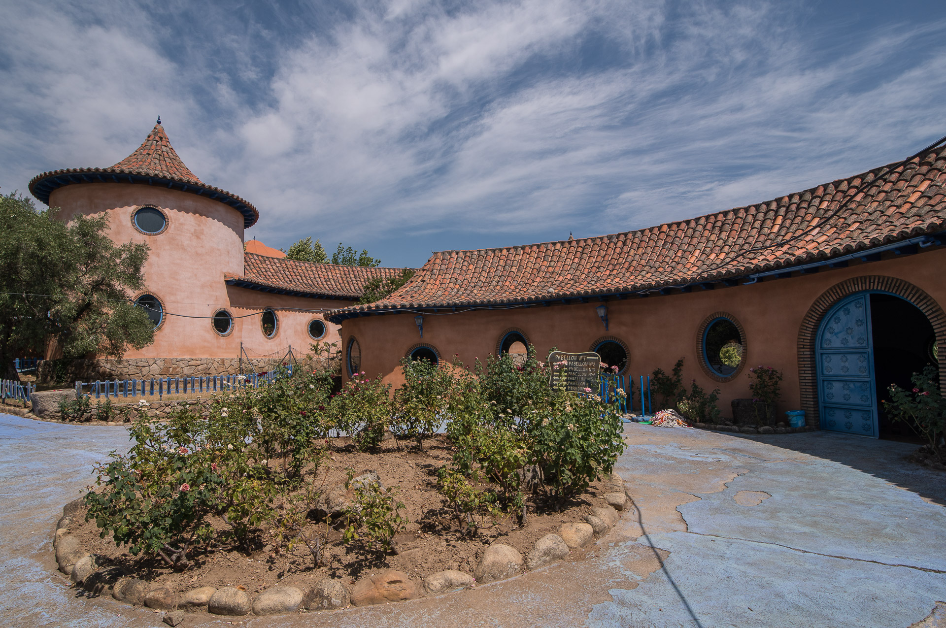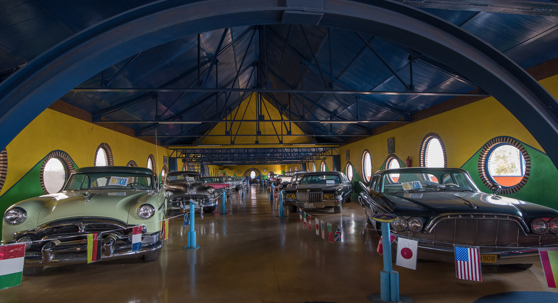 El exterior de los pabellones del Museo de la Moto y el Coche clásicos, con un peculiar estilo arquitectónico.